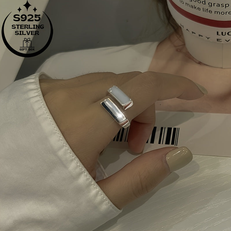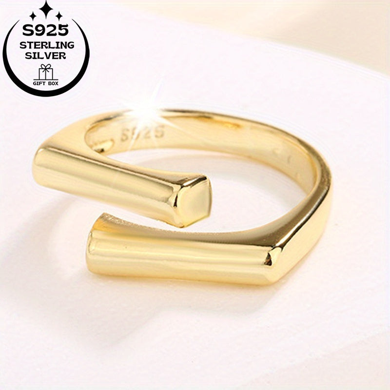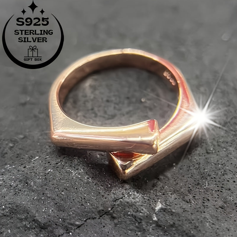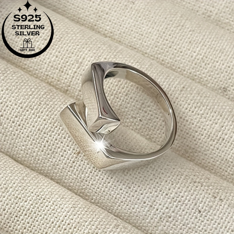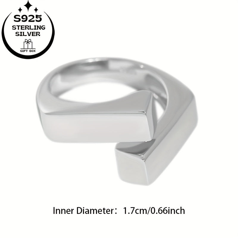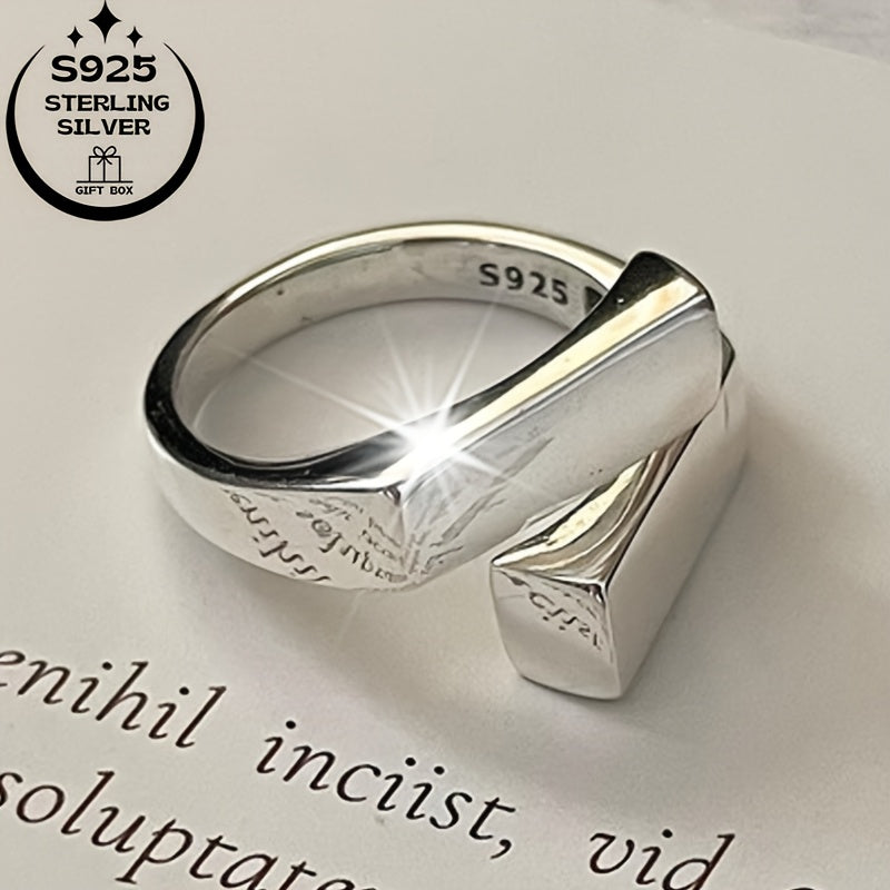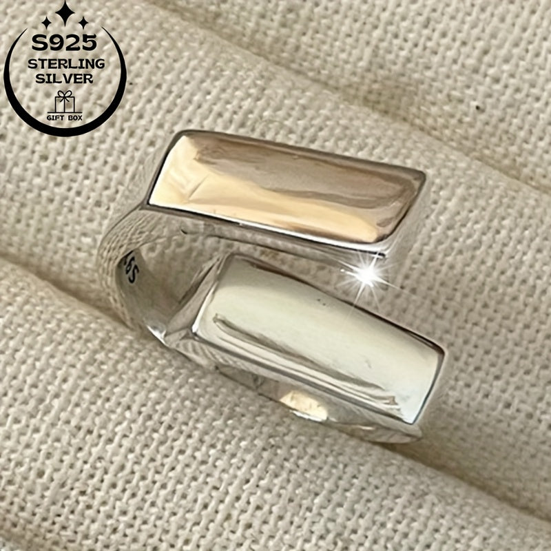 This minimalist ring is made of 925 silver and features interlocking squares. It is suitable for daily wear, birthdays, Thanksgiving, and special occasions.