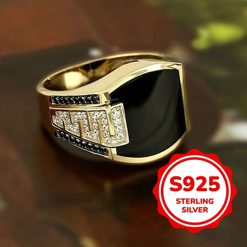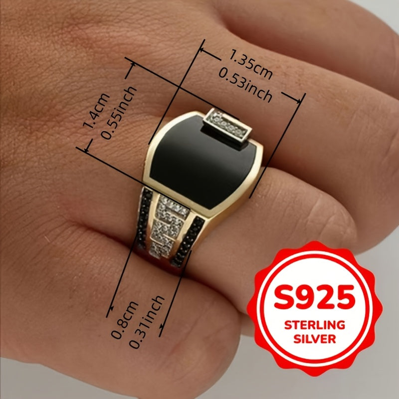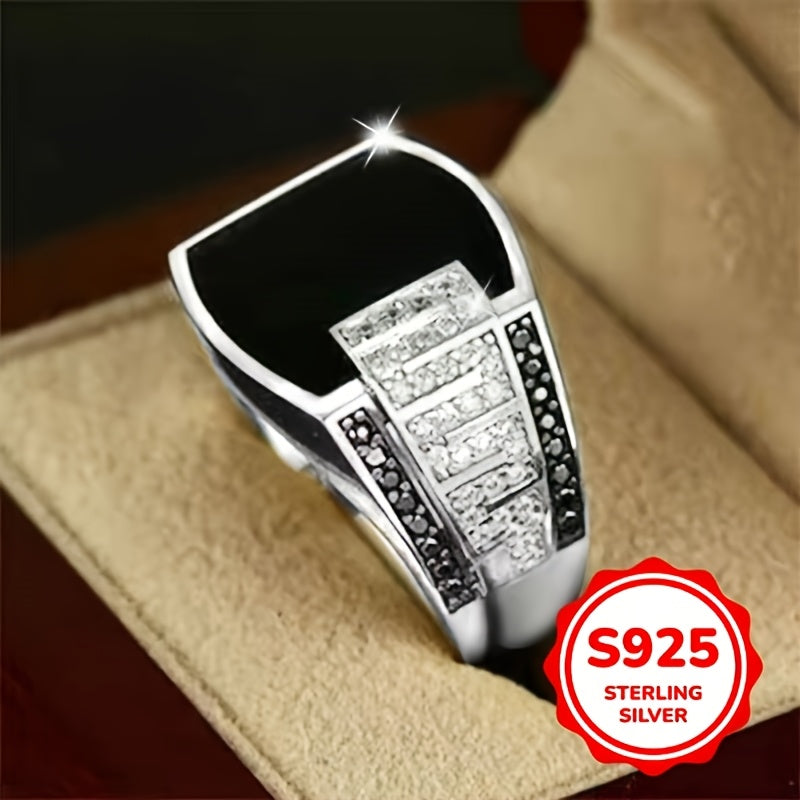 This 925 sterling silver ring features a square shape with synthetic zirconia inlay, perfect for adding a touch of hip hop punk style to your daily casual wear or party outfits.
