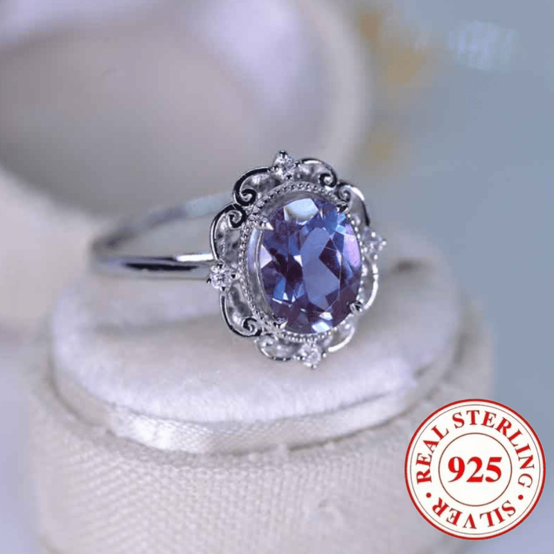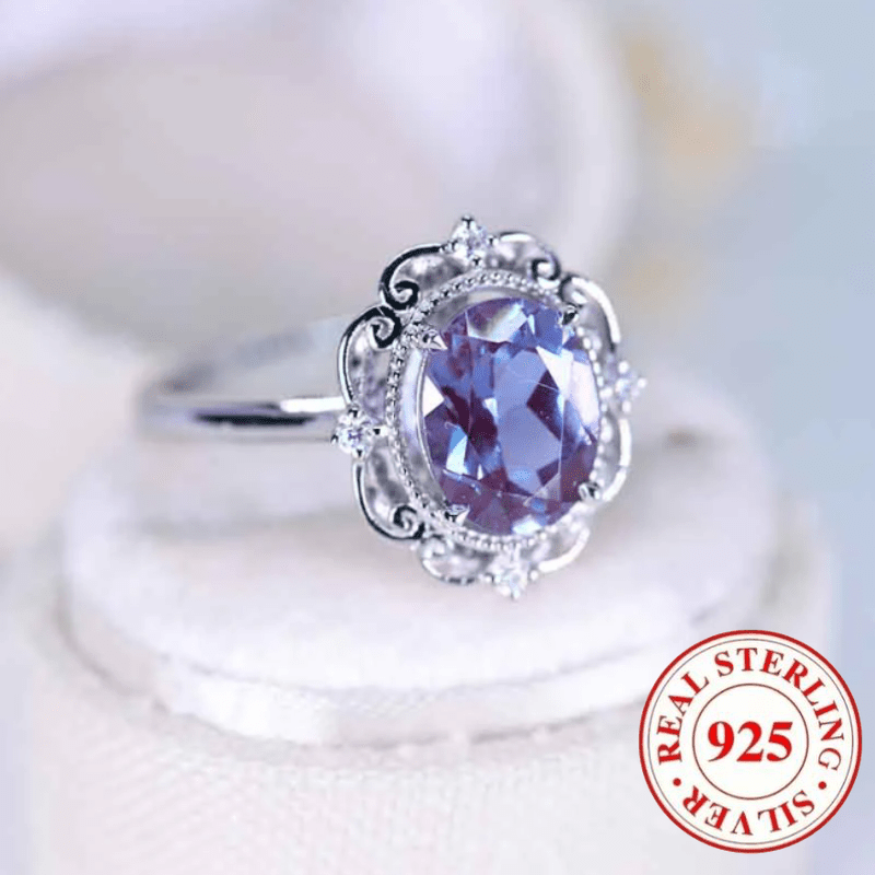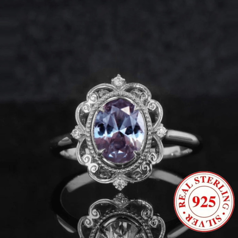 925 Silvery Flash Lace Oval Women's Ring for Party Engagement