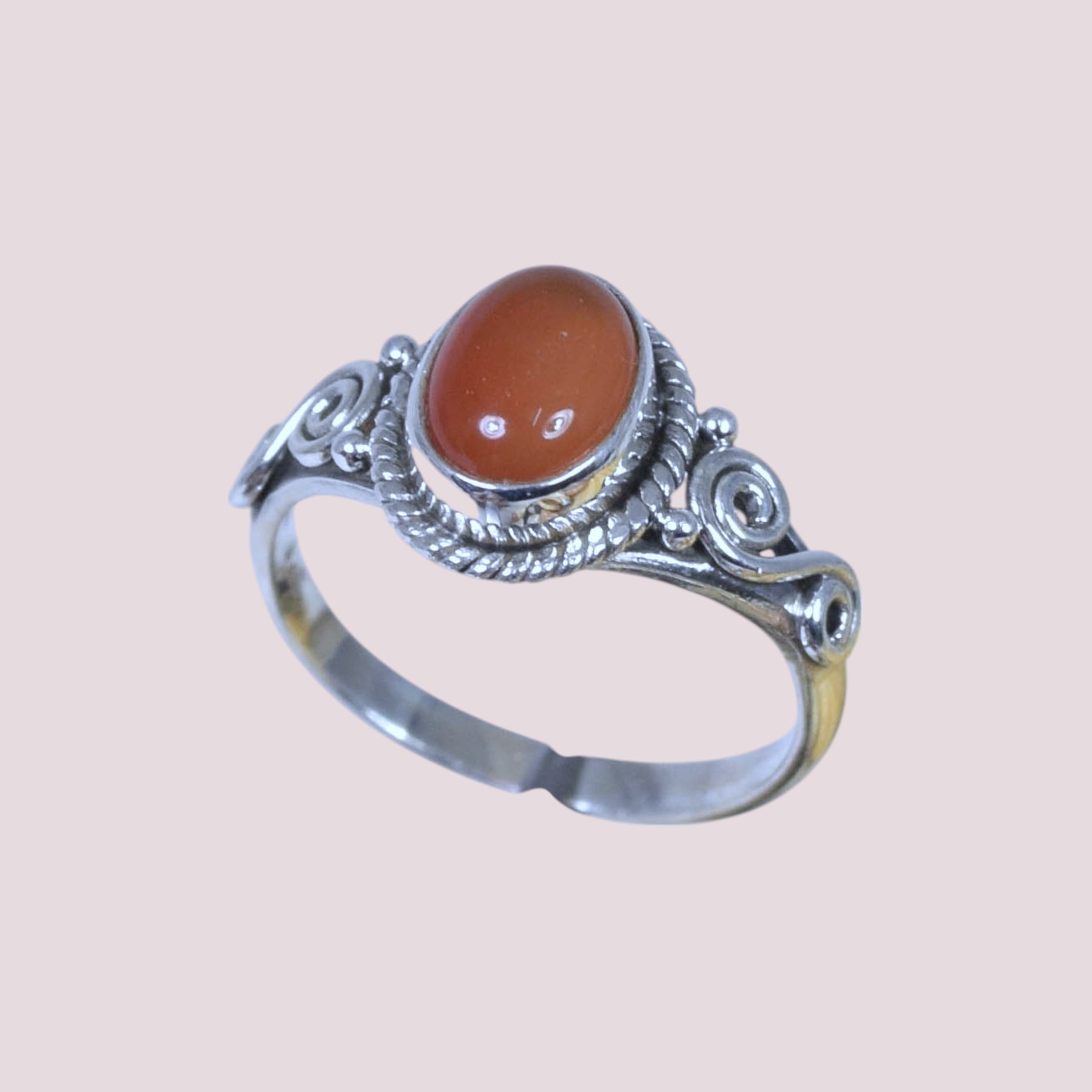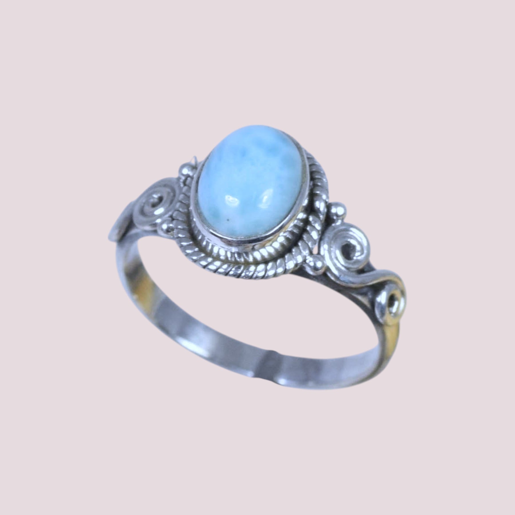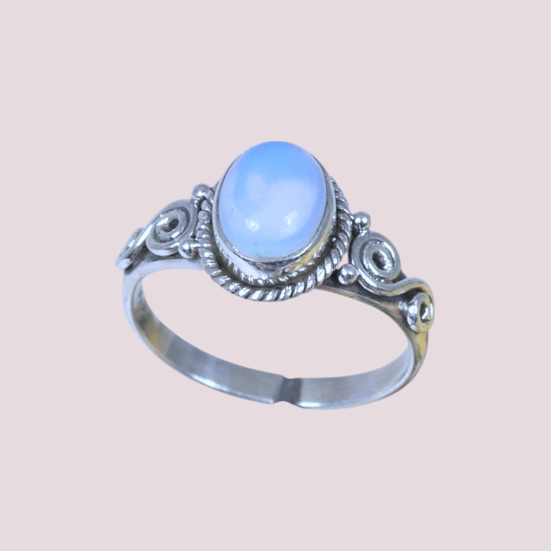 This minimalist ring is made of 925 sterling silver and features a natural gemstone in your choice of Larimar, Carnelian, Moostone, Opalite, Malachite, Labradorite, and other options. Add a touch of elegance to your look.