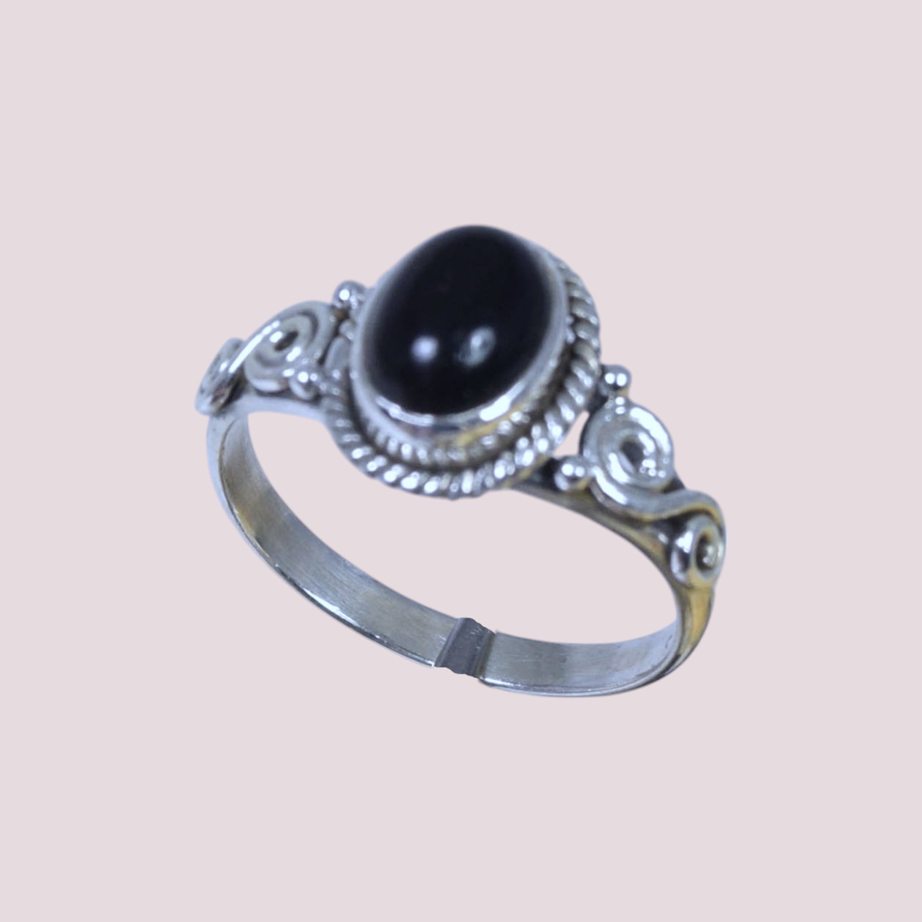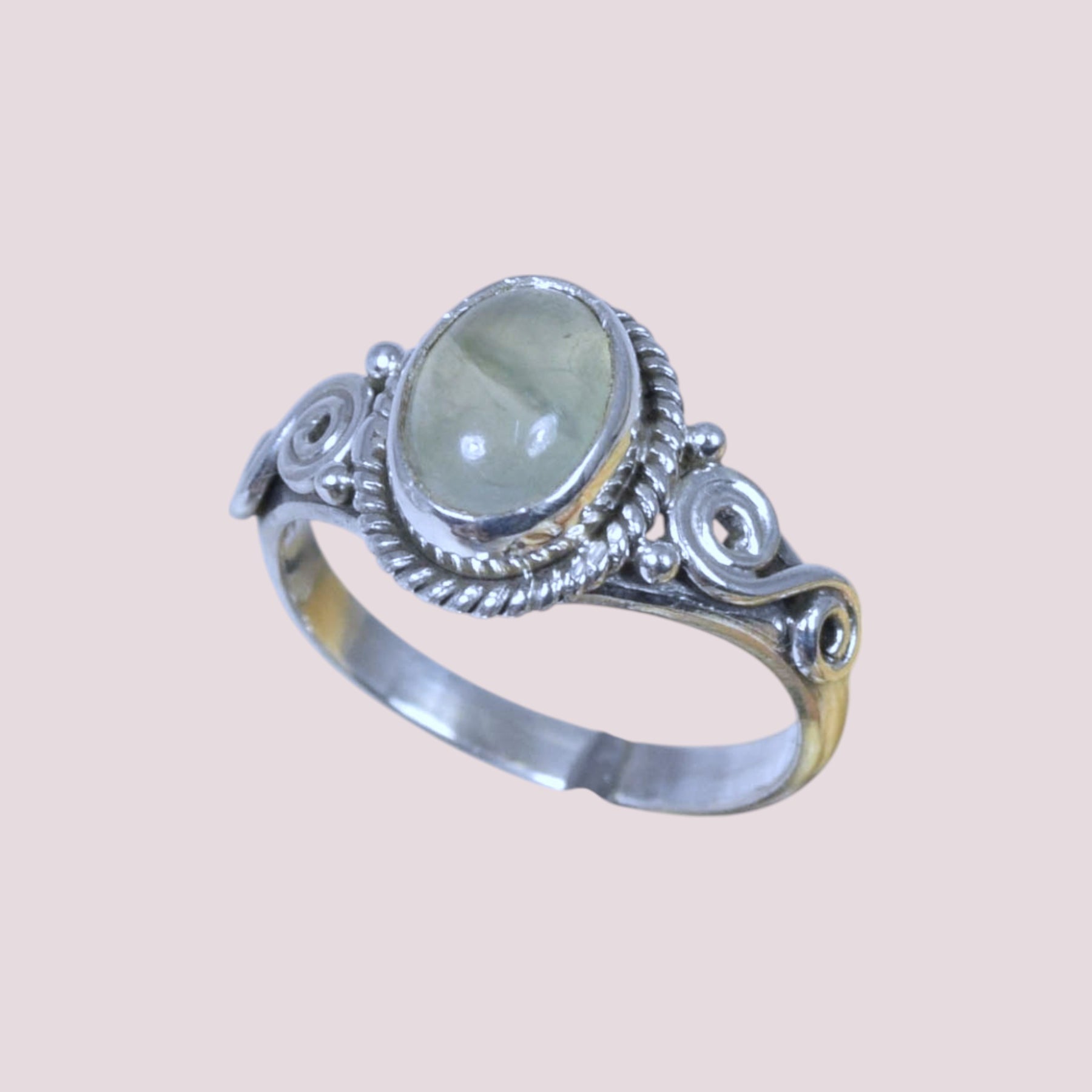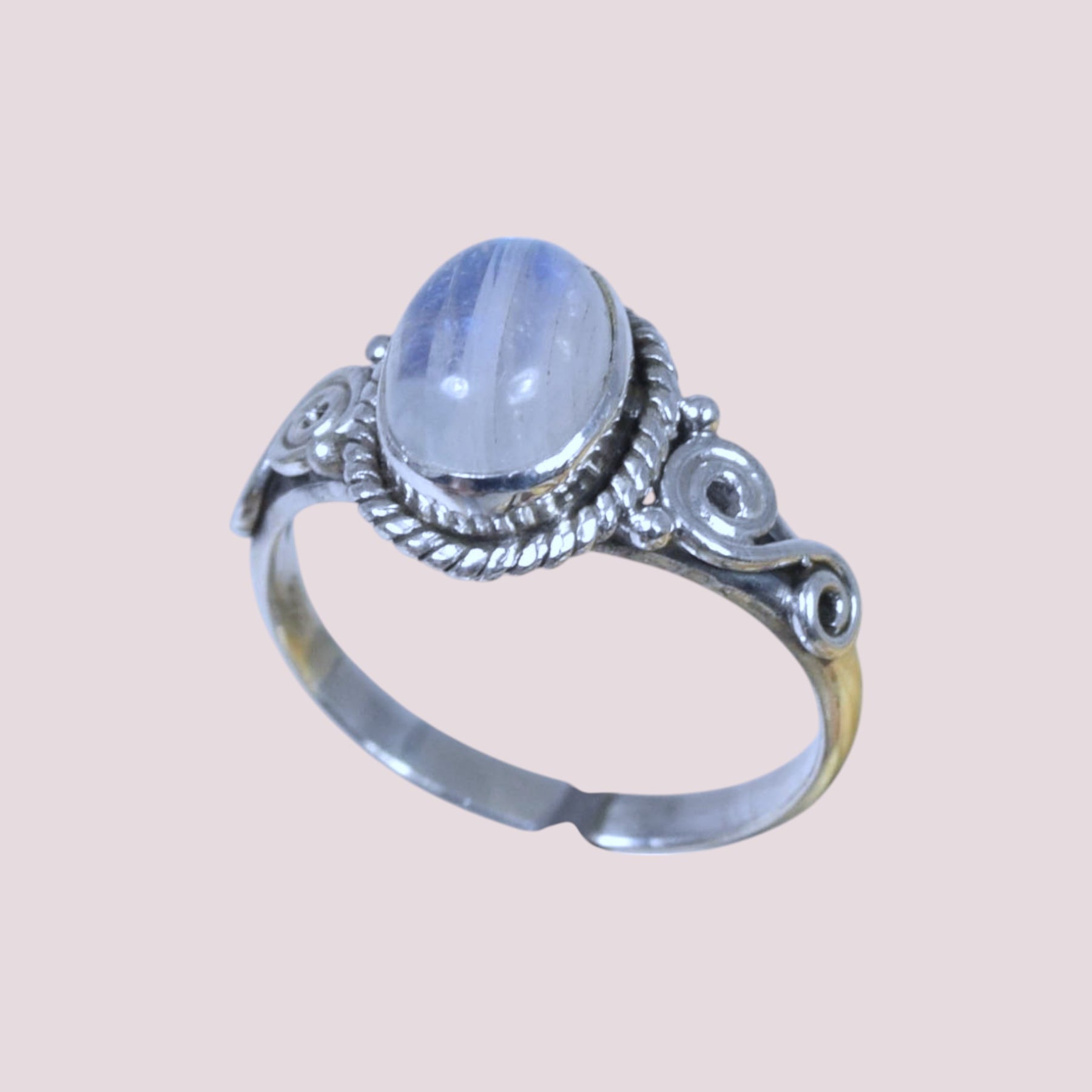 This minimalist ring is made of 925 sterling silver and features a natural gemstone in your choice of Larimar, Carnelian, Moostone, Opalite, Malachite, Labradorite, and other options. Add a touch of elegance to your look.