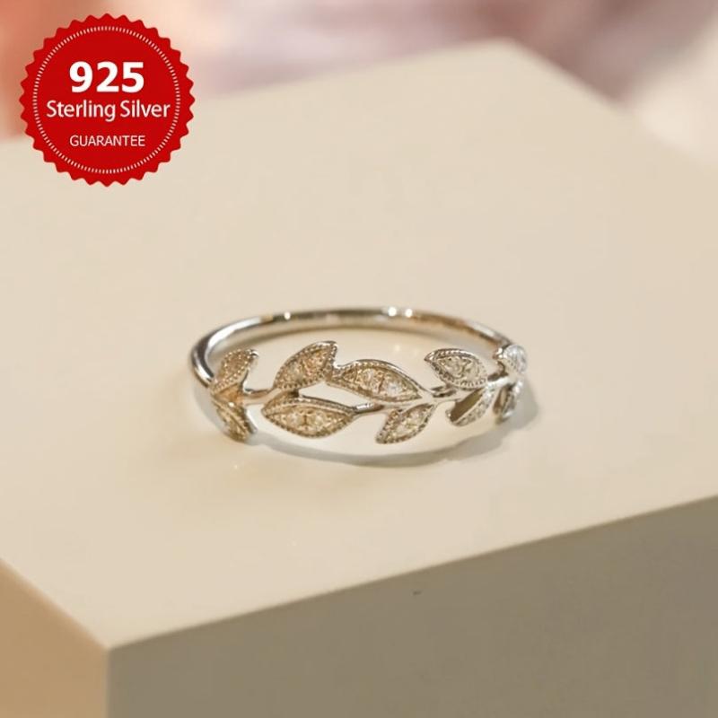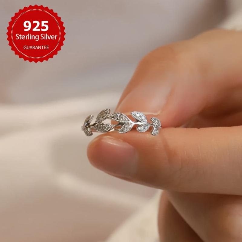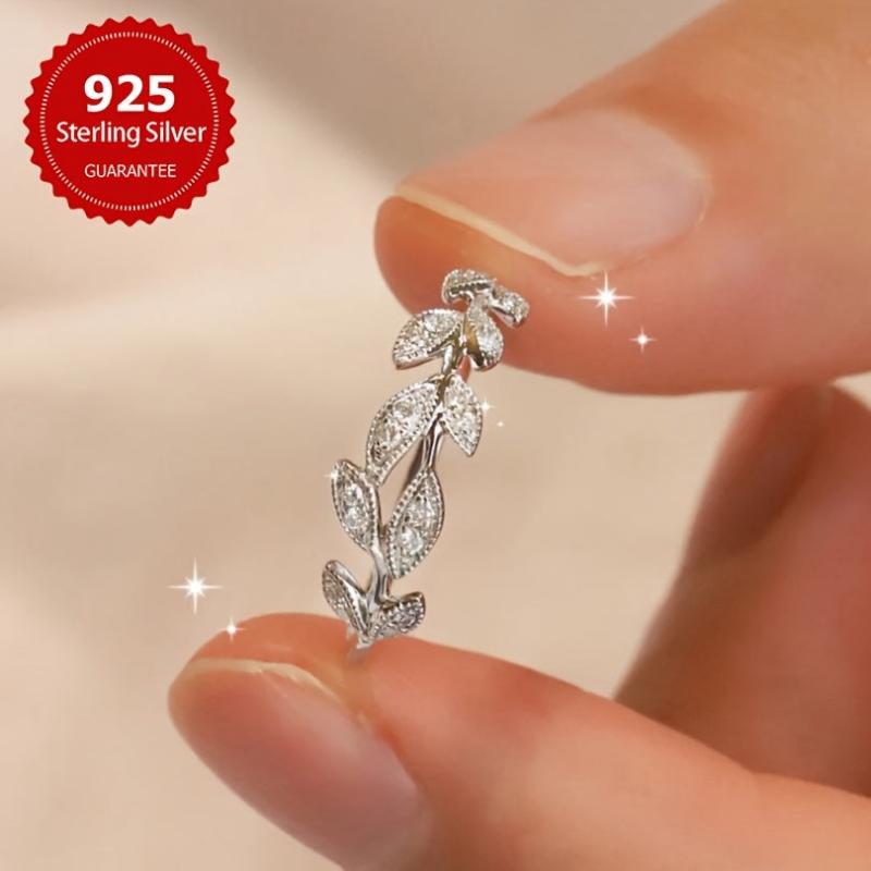 This elegant 925 sterling silver eternity ring features intricate leaf details. Perfect for engagement, wedding, anniversary, or as a Valentine's gift for her. Versatile design suitable for all seasons.