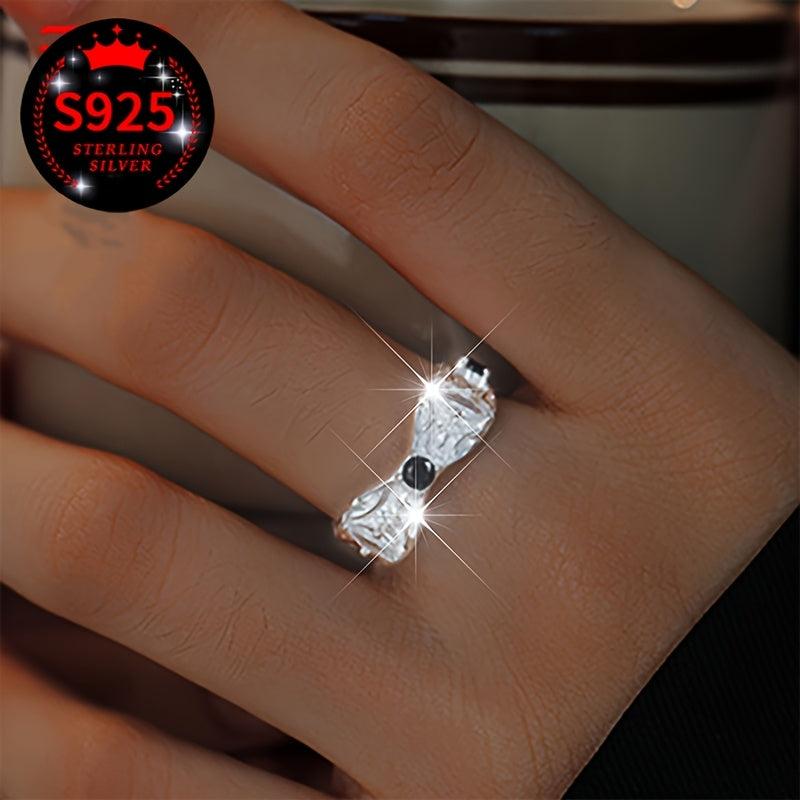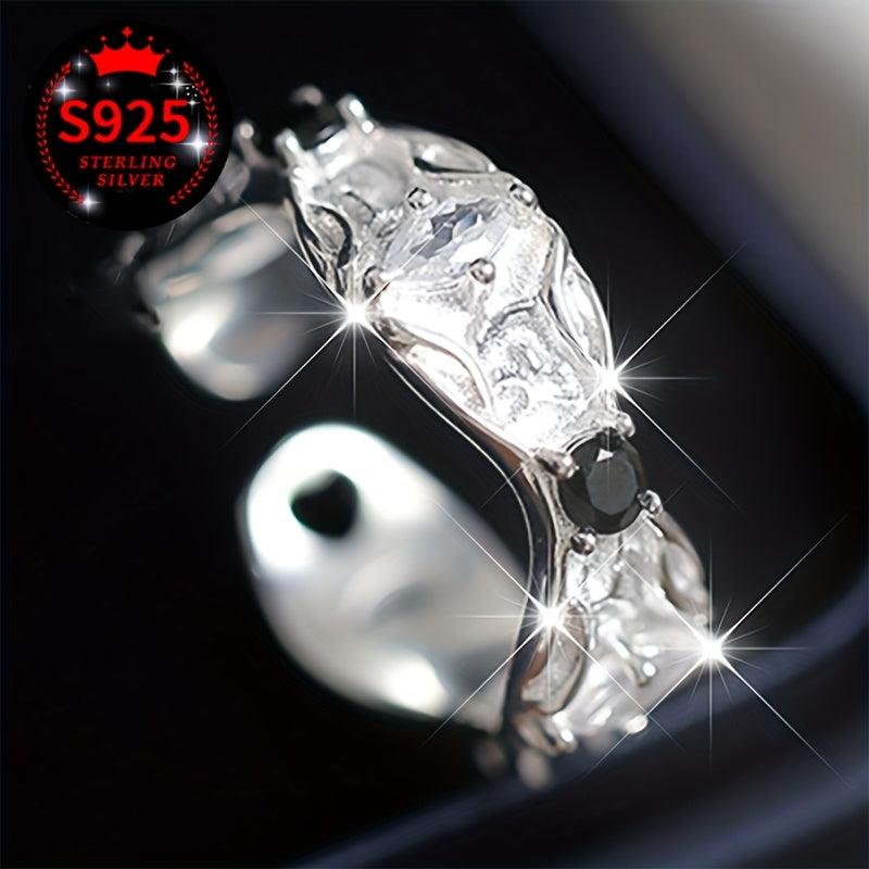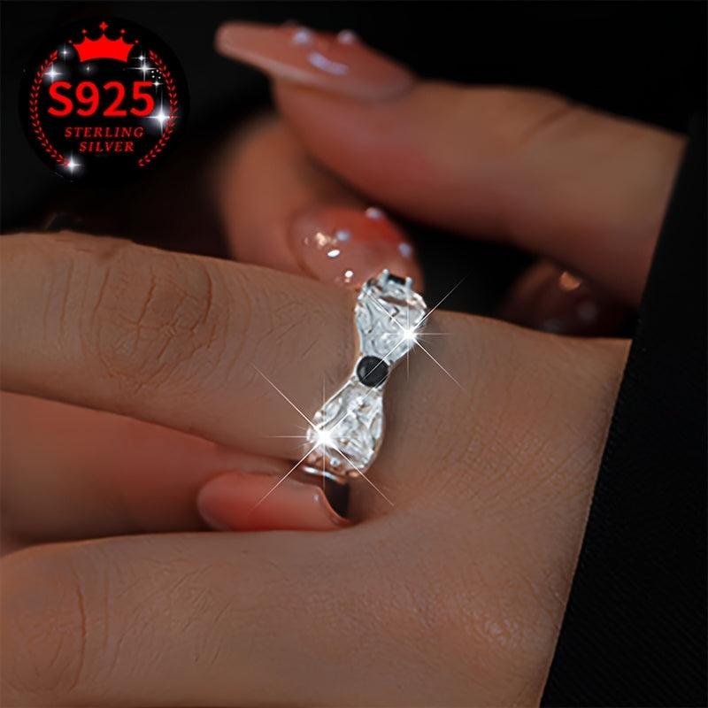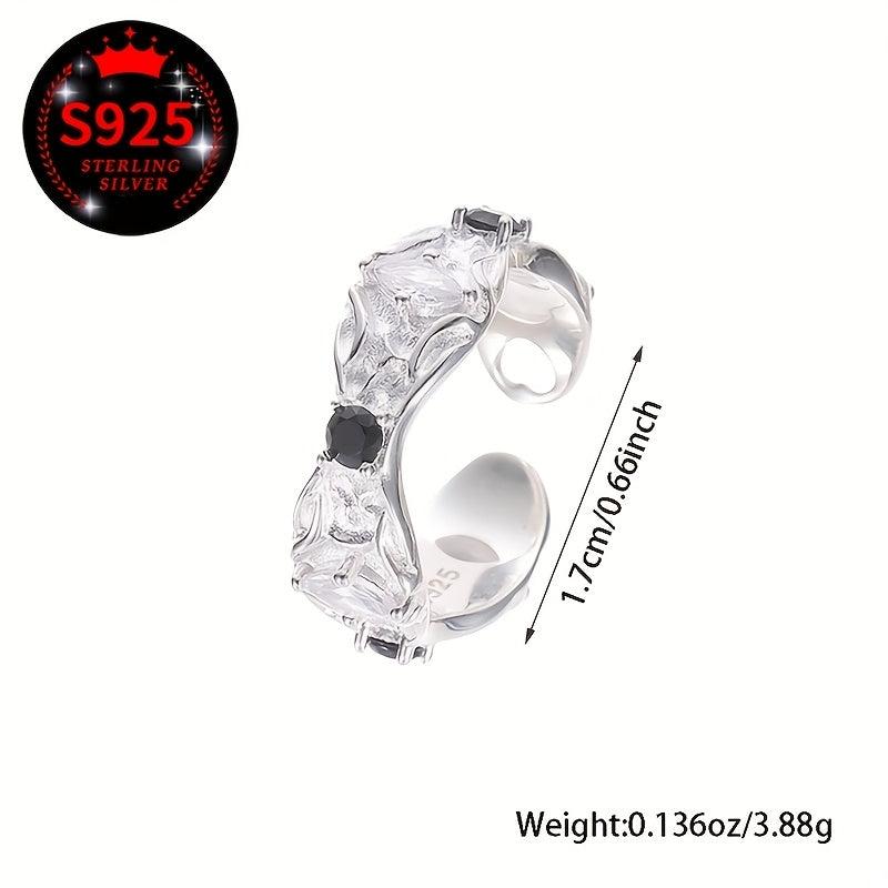 Elegant 925 sterling silver open ring featuring synthetic zirconia stones. This adjustable ring is perfect for daily wear, travel, and parties. Surprise someone special with this stunning piece!