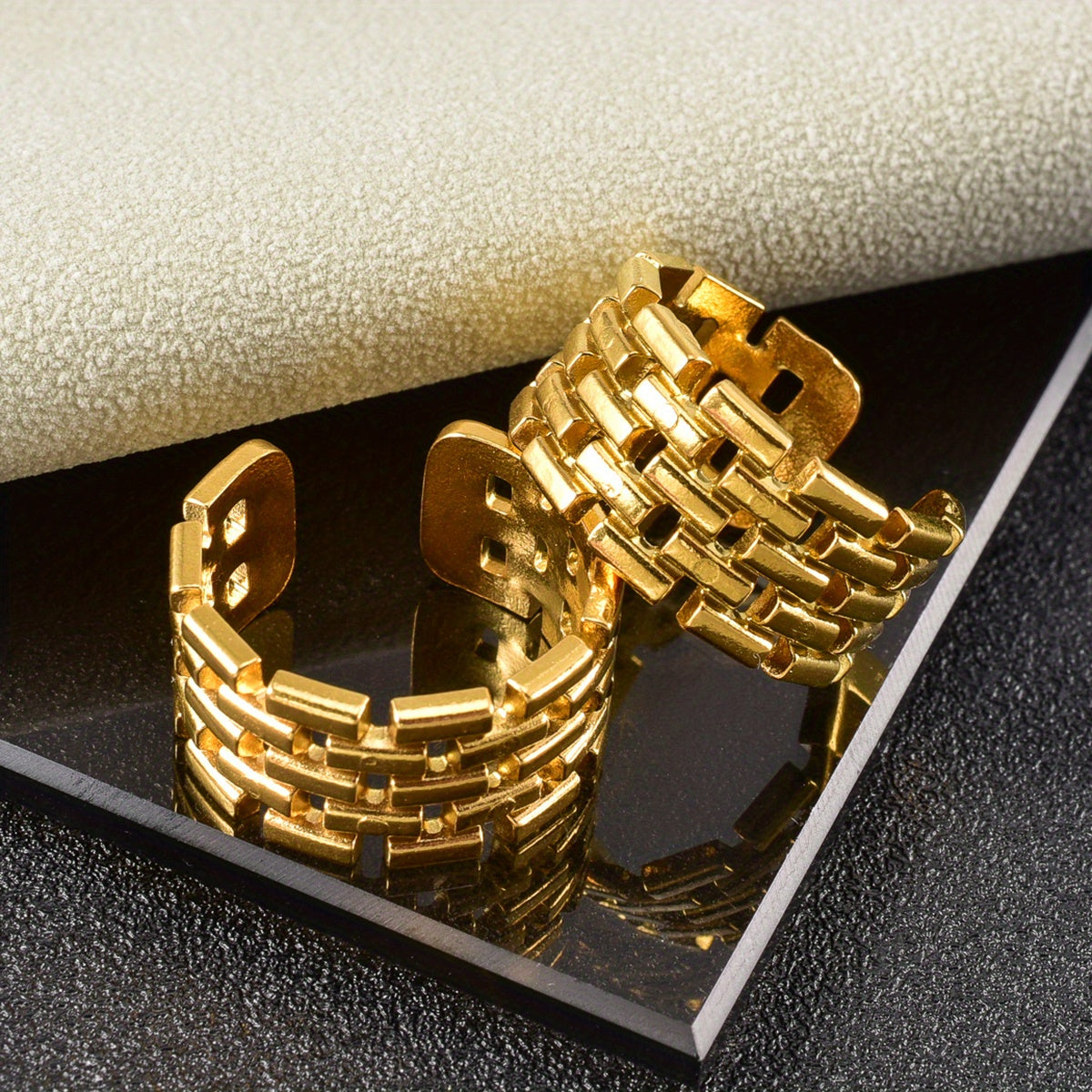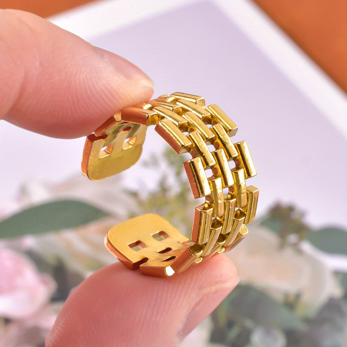 Add a touch of Middle Eastern inspiration to your look with this vintage adjustable chain link ring. Crafted from stainless steel in a golden tone, this unisex jewelry piece is perfect for casual attire and makes a great gift for men and women.