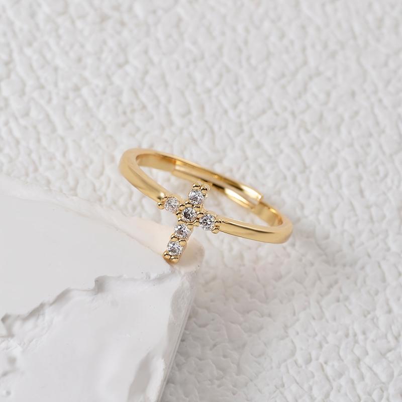 Adjustable Cross Ring with Zirconia Daily Wear Gift Option