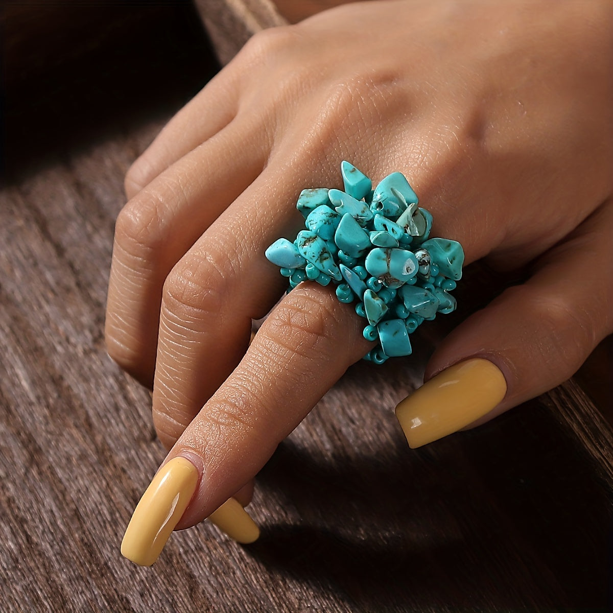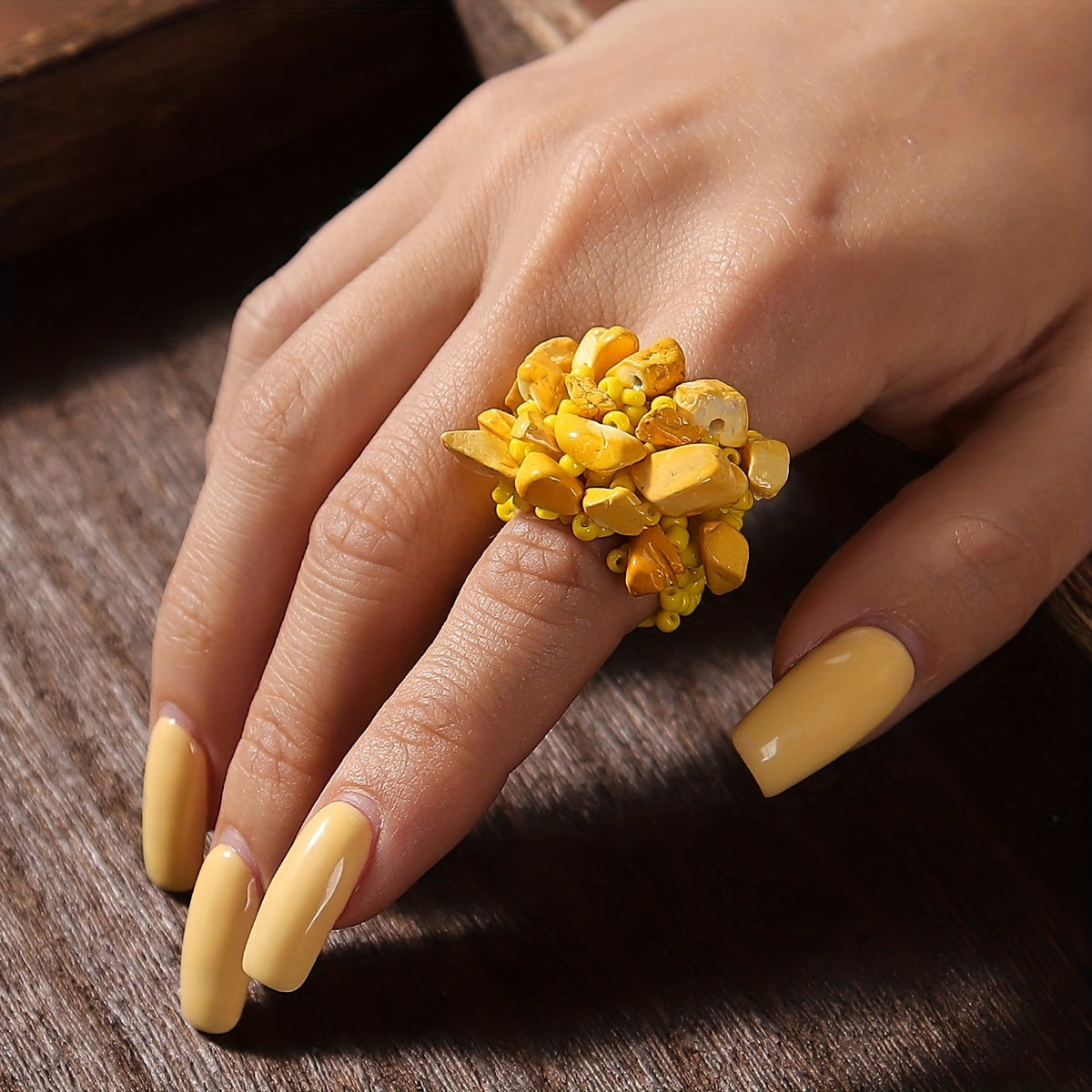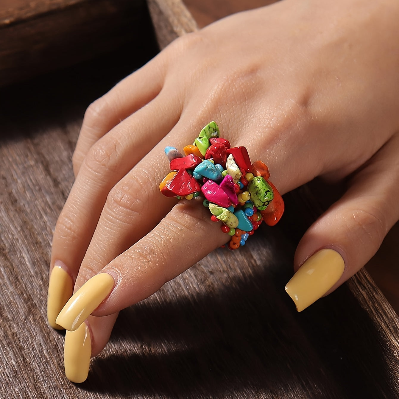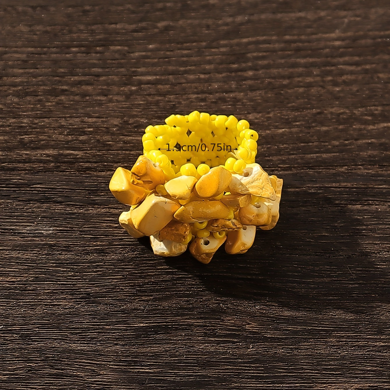 Enhance your summer beach look with this stylish rice beads beaded band ring featuring unique stone and size variations. Perfect for bohemian vacation style!