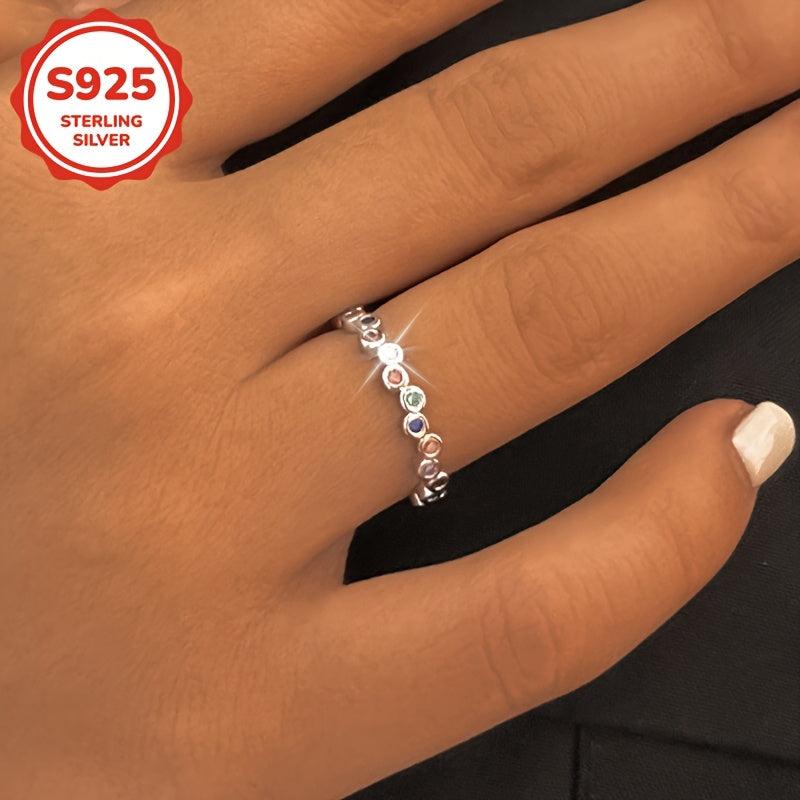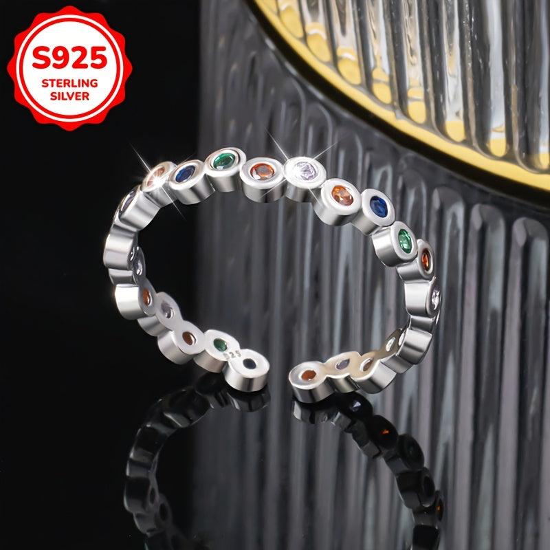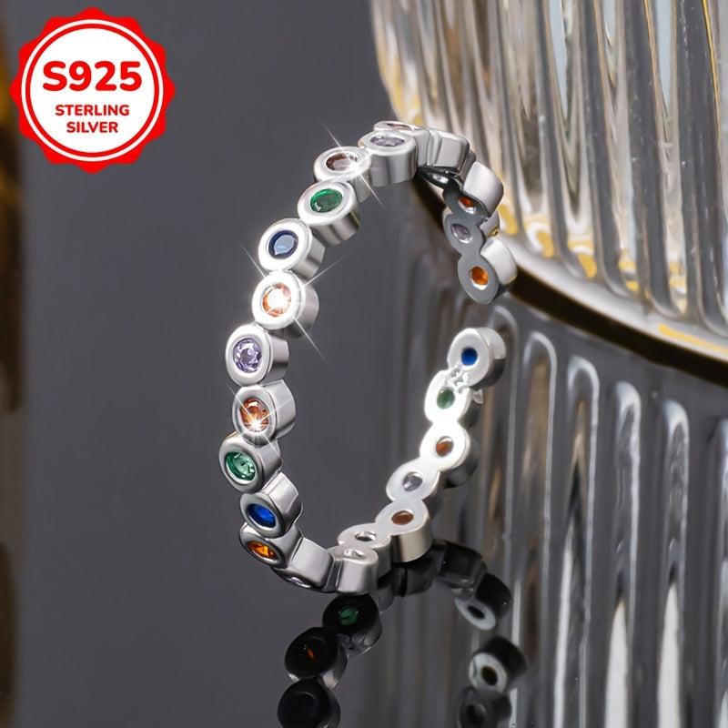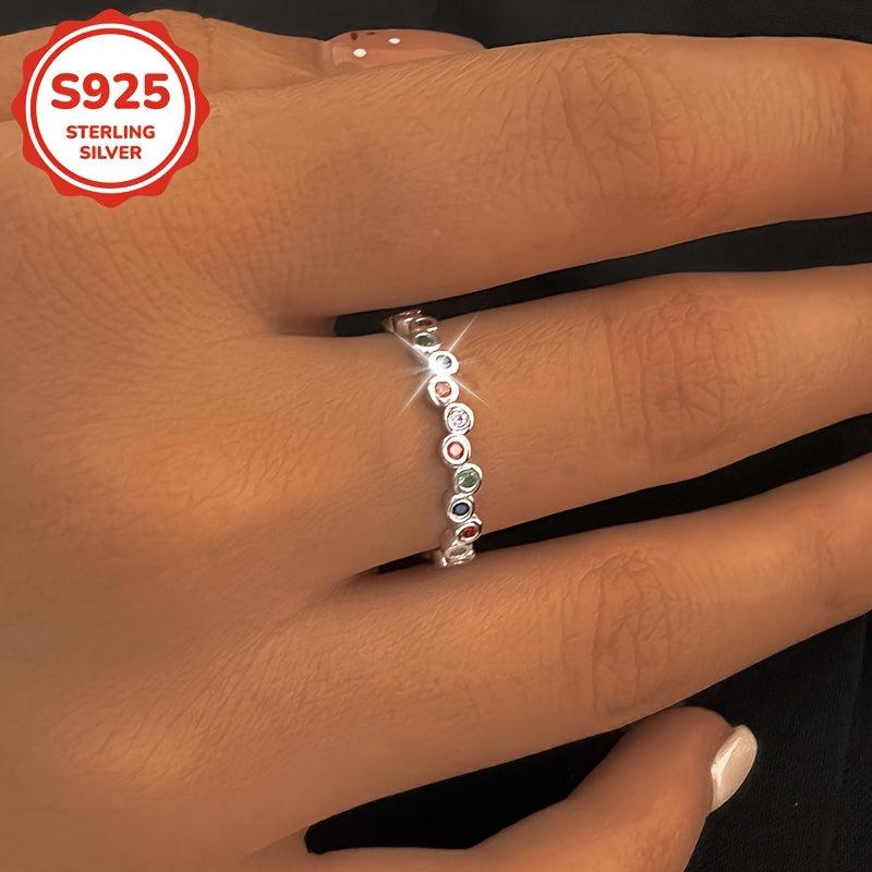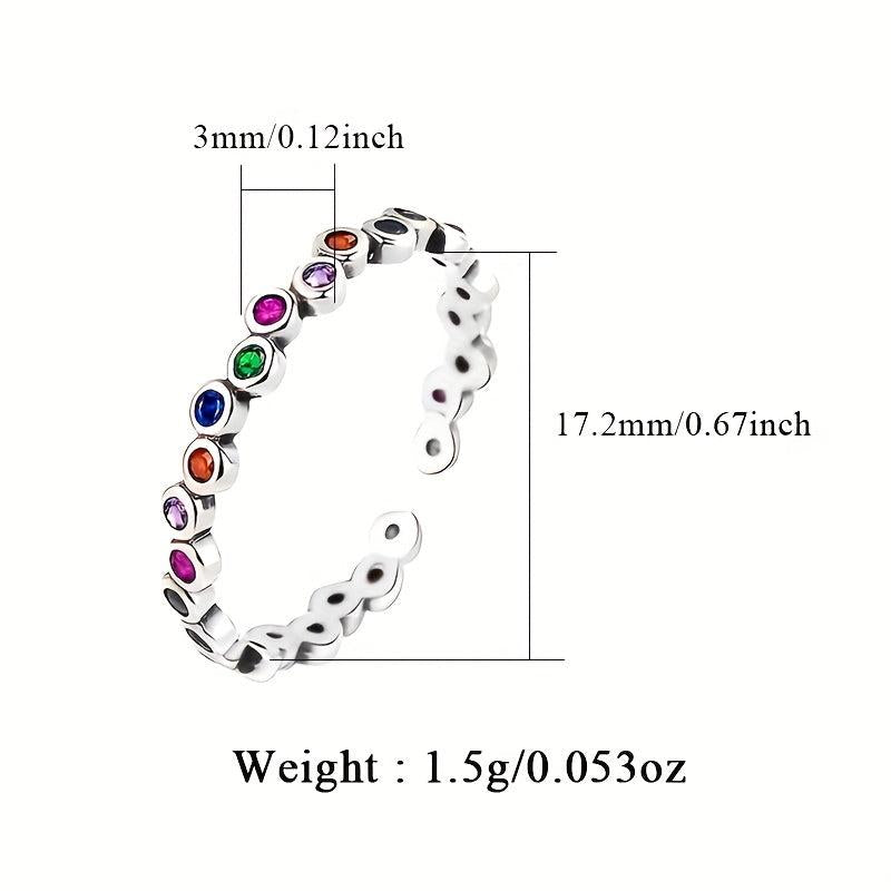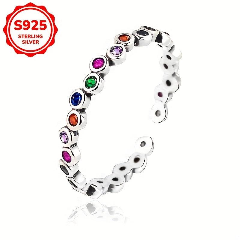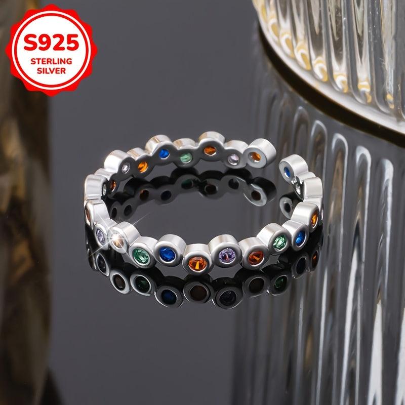 This stunning women's ring features synthetic colorful zirconia inlay on a 925 silver band. Perfect for daily wear, vacations, or as a holiday gift.