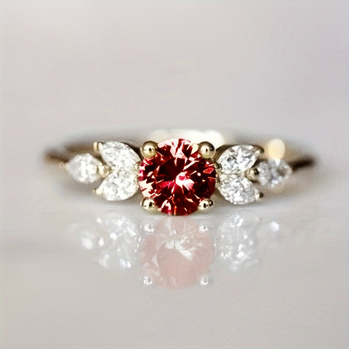 Copper Engagement Ring with Synthetic Garnet 4 Prong Setting Round Gemstone