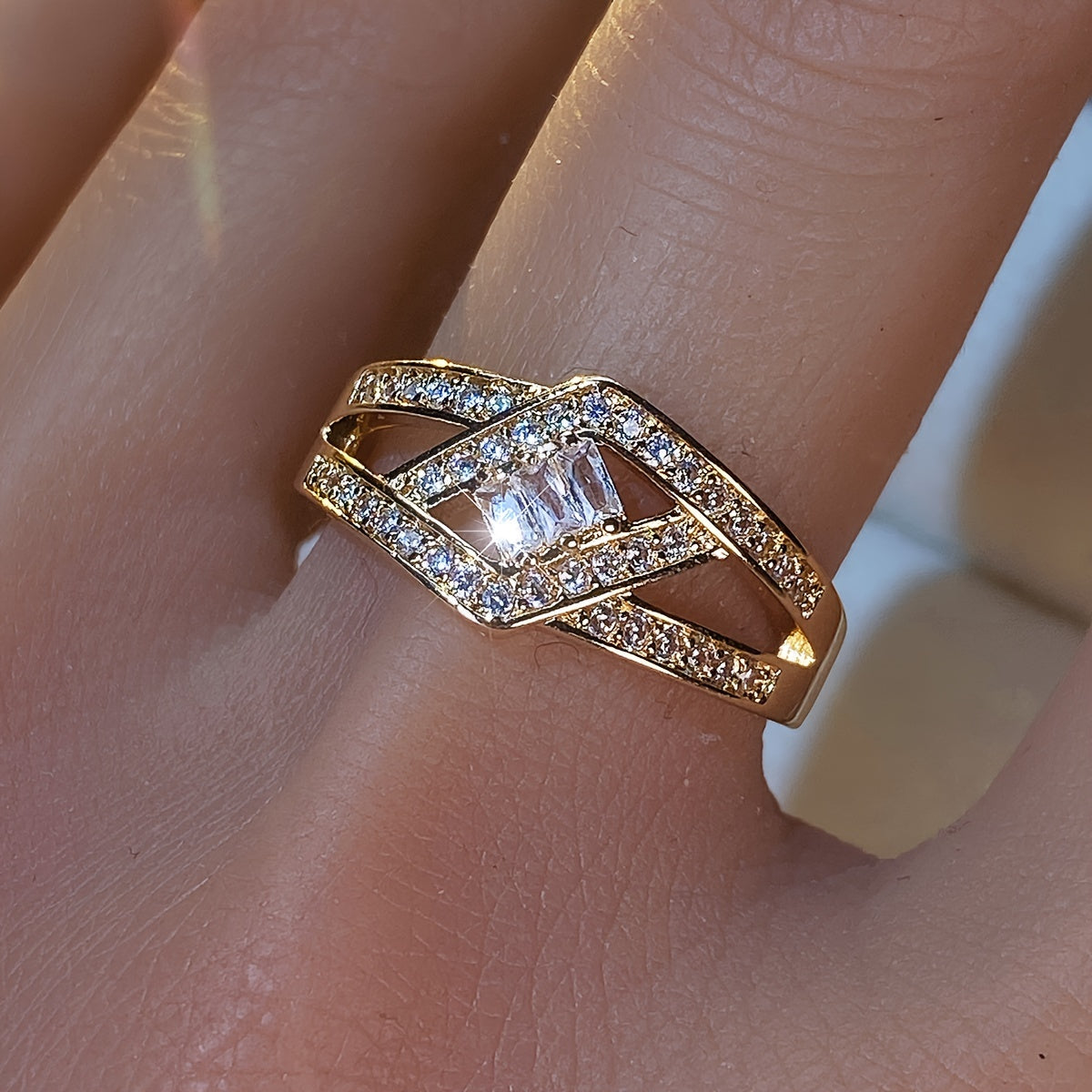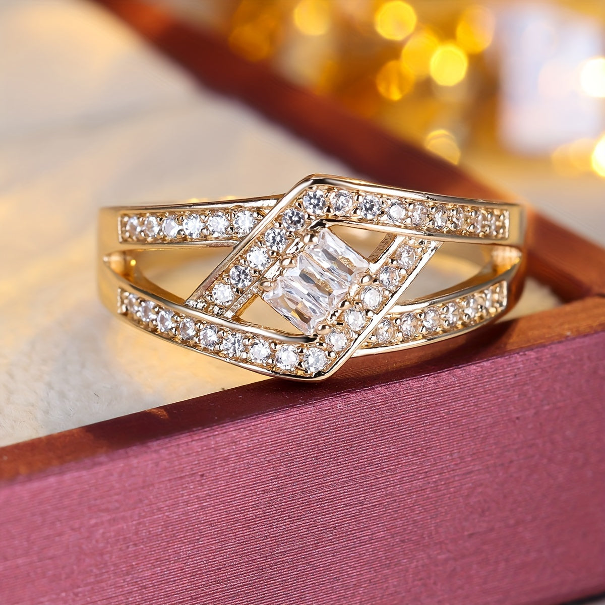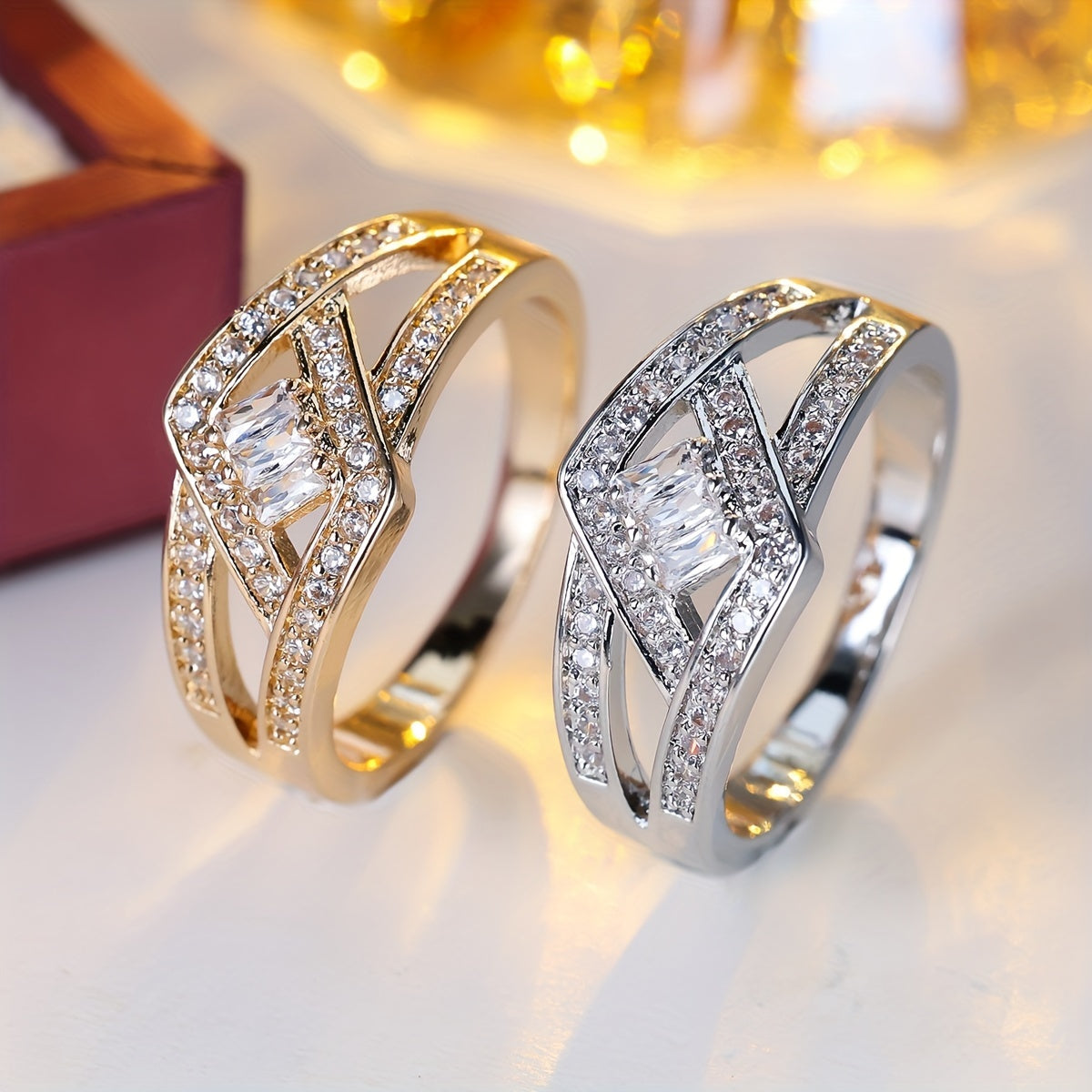 Elevate your style with this stunning copper ring featuring a synthetic cubic zirconia hollow square design. Perfect for daily wear or parties.
