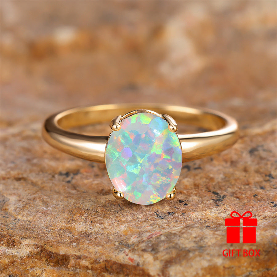 This elegant copper ring features an oval synthetic opal, making it a perfect accessory for daily wear or as a thoughtful gift. Its versatility makes it suitable for all seasons.