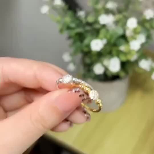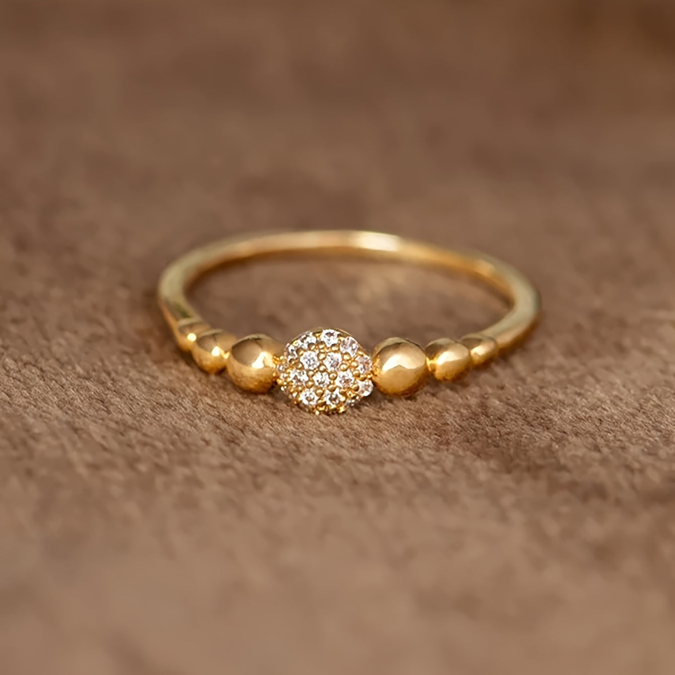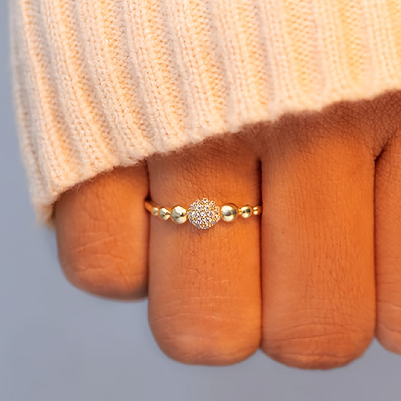 This elegant ring features a pure silvery round ball design with synthetic zirconia. It exudes a fashionable European and American style.