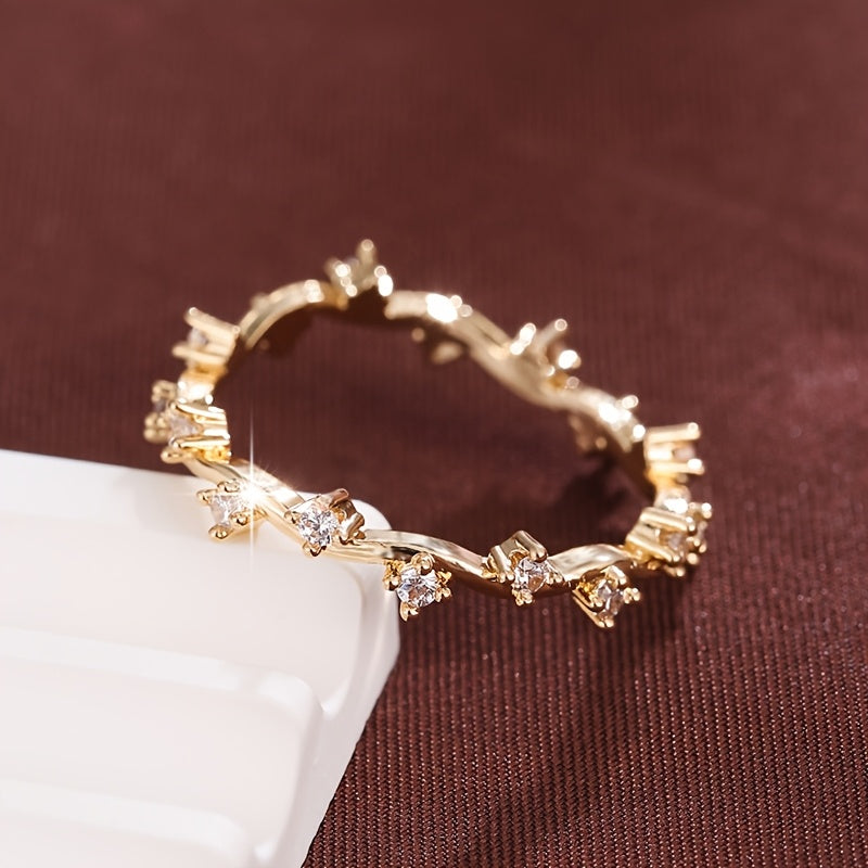 This stylish ring features a golden branch design with sparkling CZ accents. Perfect for everyday wear or as a thoughtful gift.
