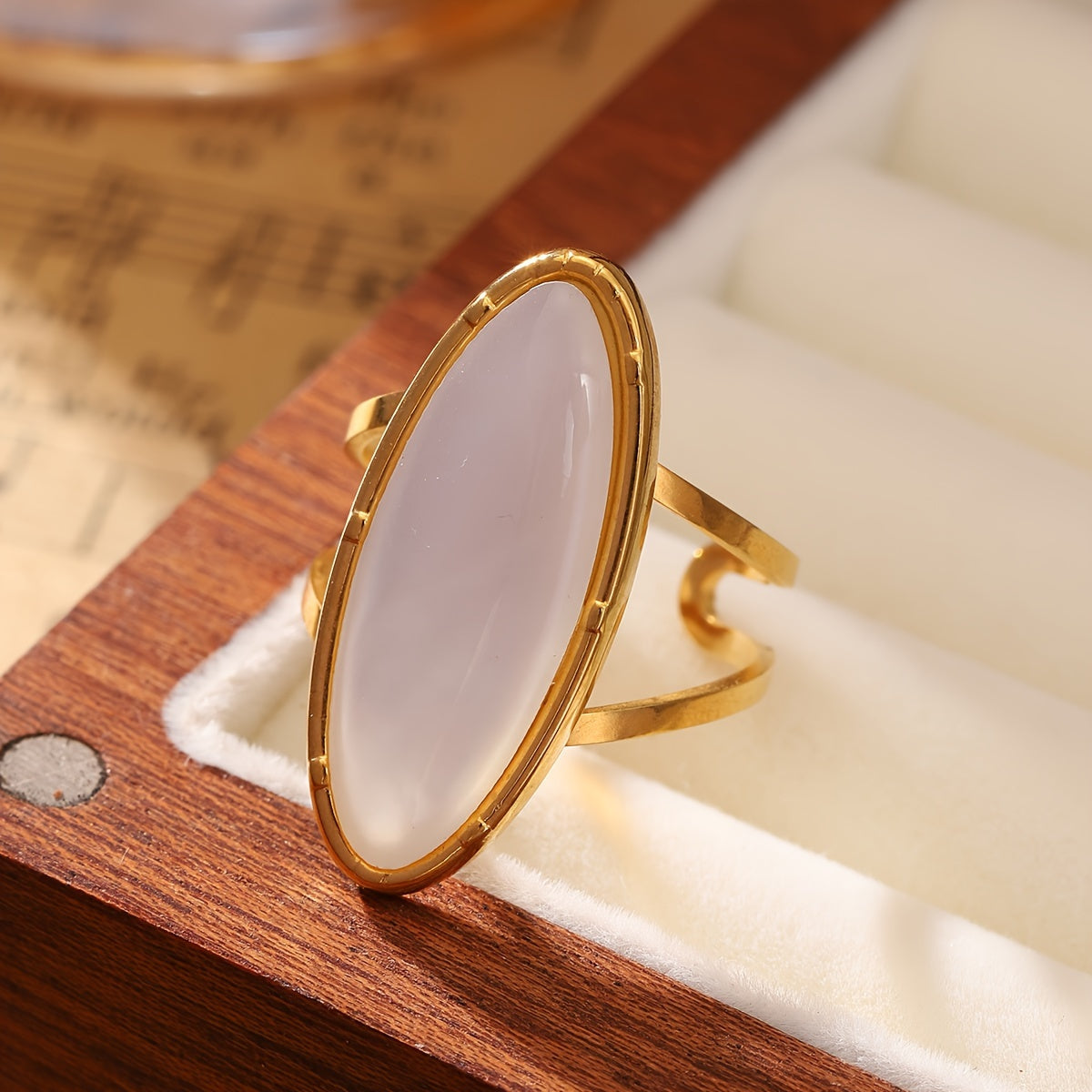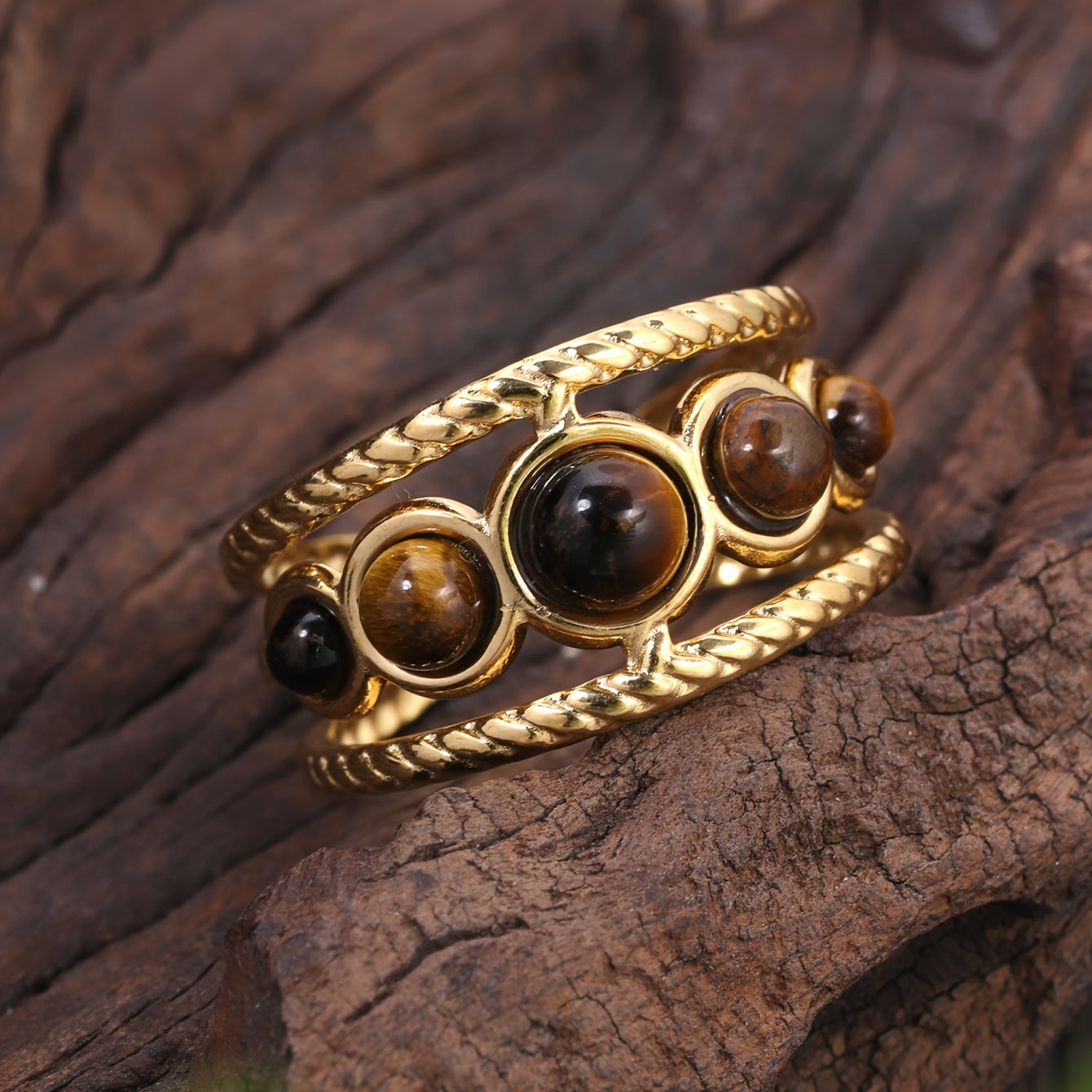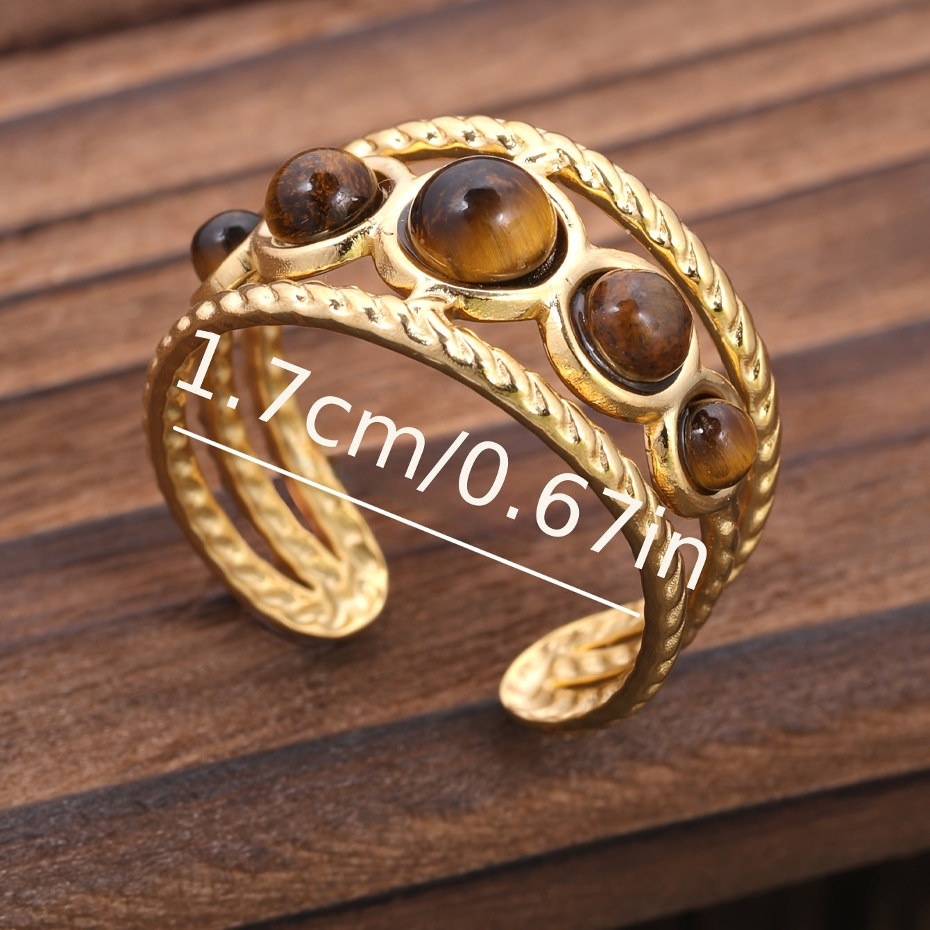 Elegant round hollow ring with an opening adjustment featuring a natural stone center. Perfect for a gift or to wear at banquets with its light design.