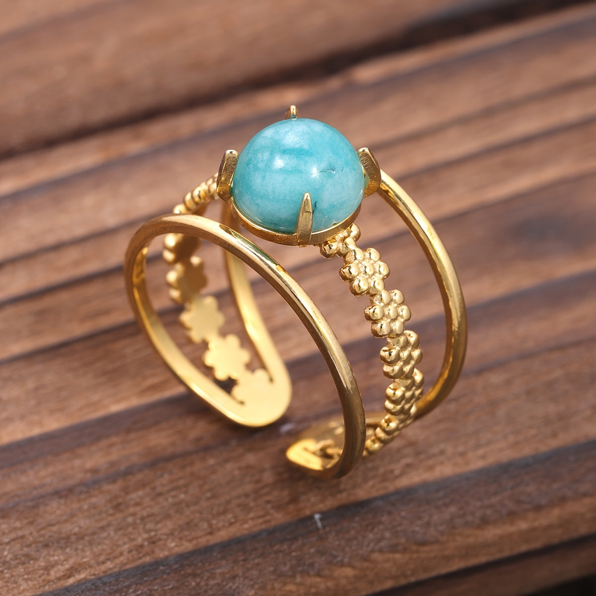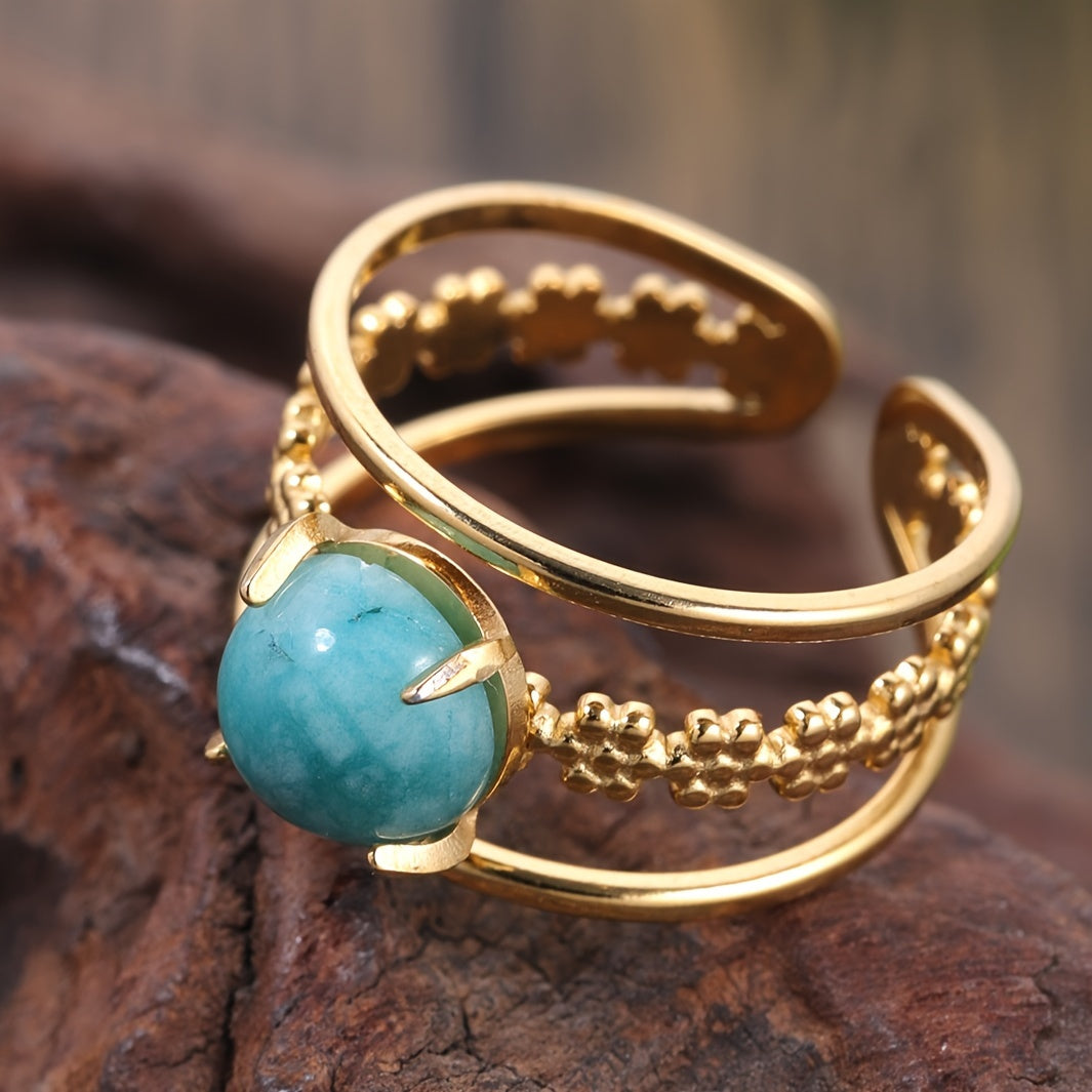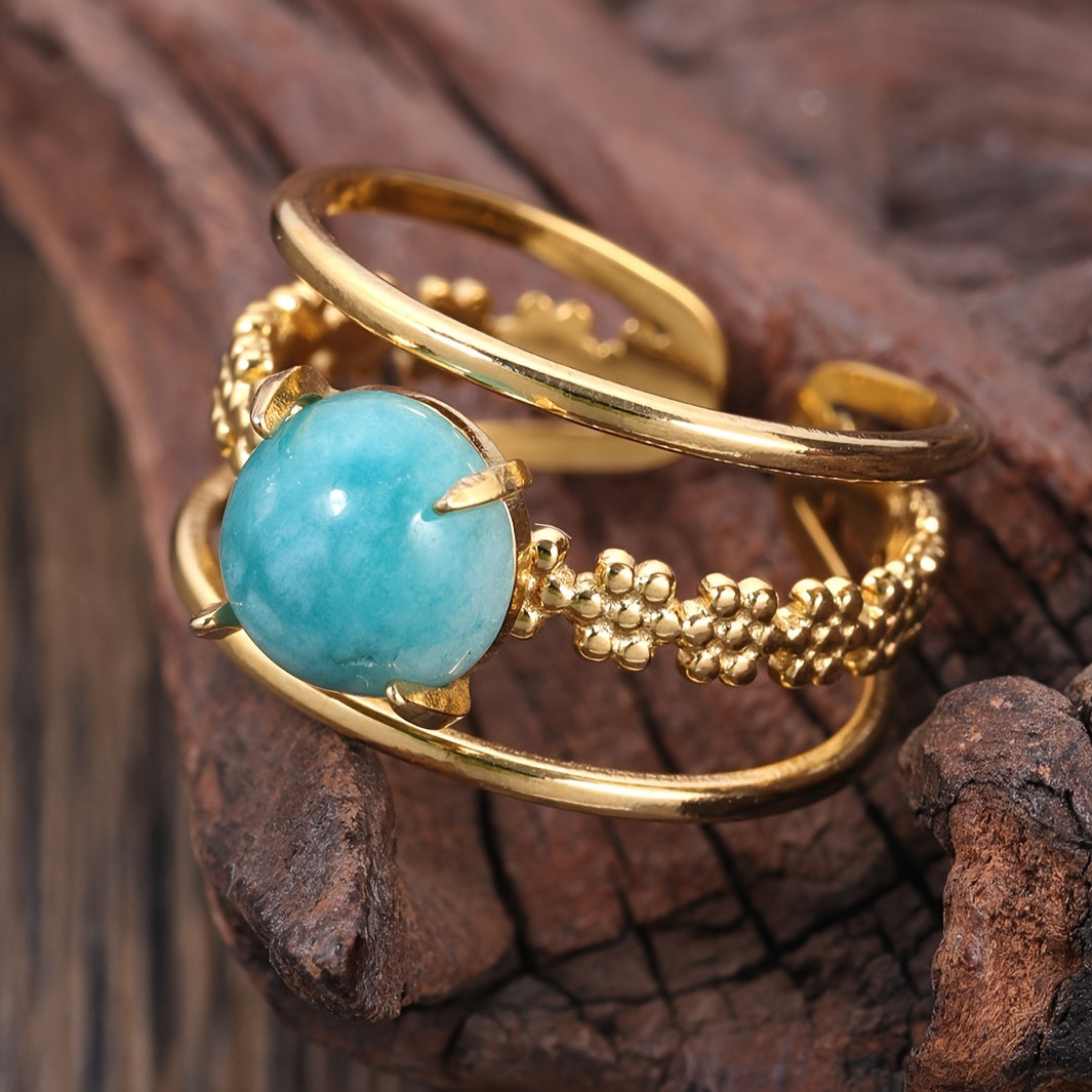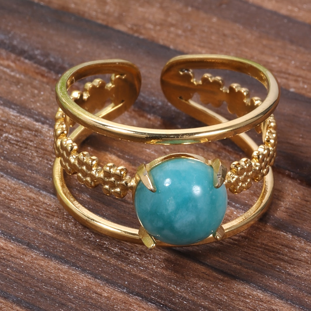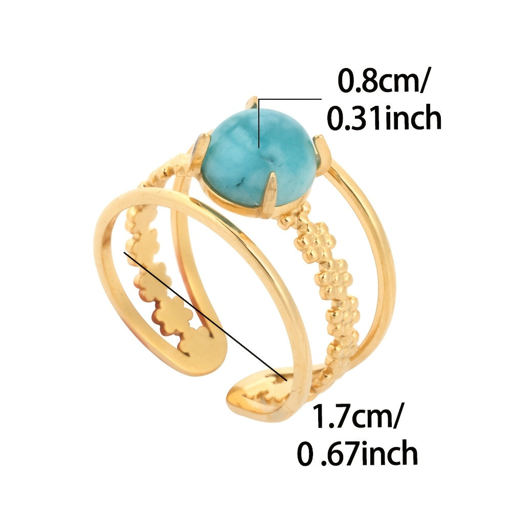 Make a statement at parties and birthdays with this stunning ring featuring a turquoise stone set in golden stainless steel.