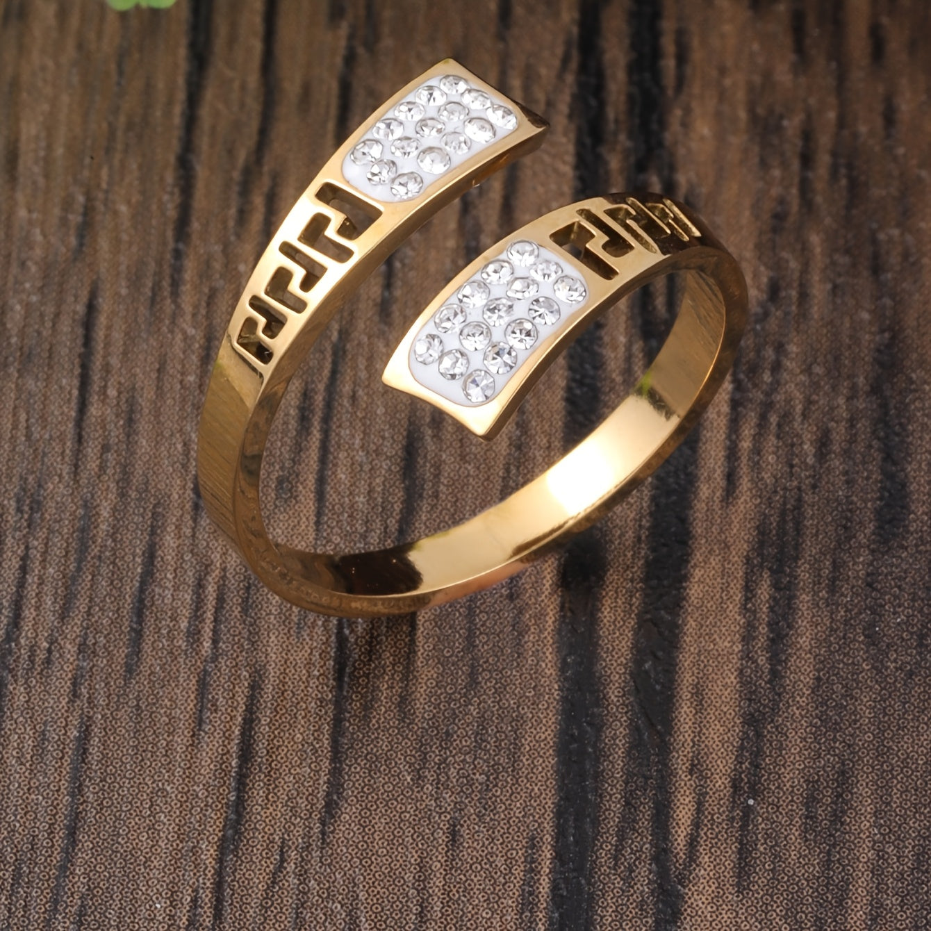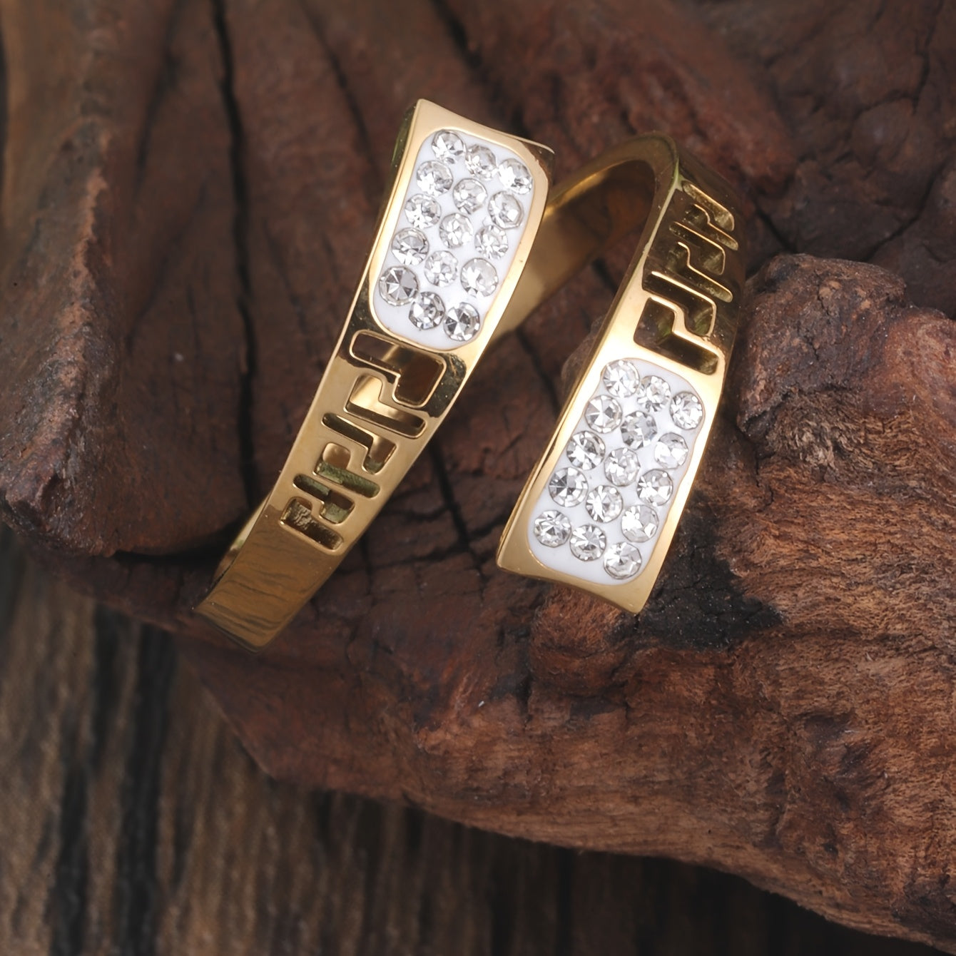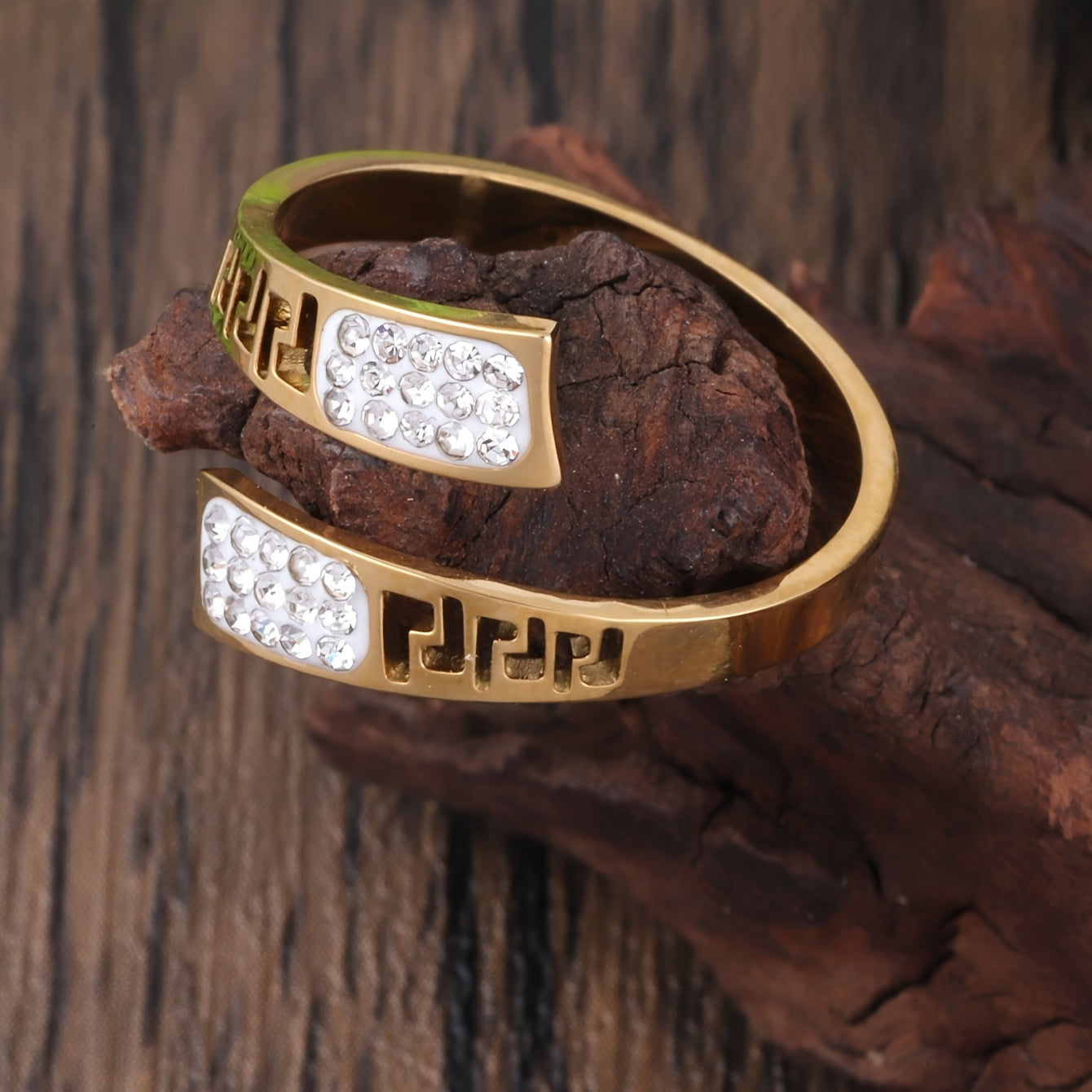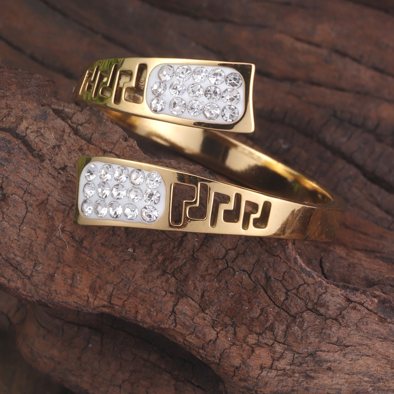Add a touch of glamour to your look with this stunning ring featuring a geometric rhinestone inlay. Perfect for parties and Ramadan celebrations.