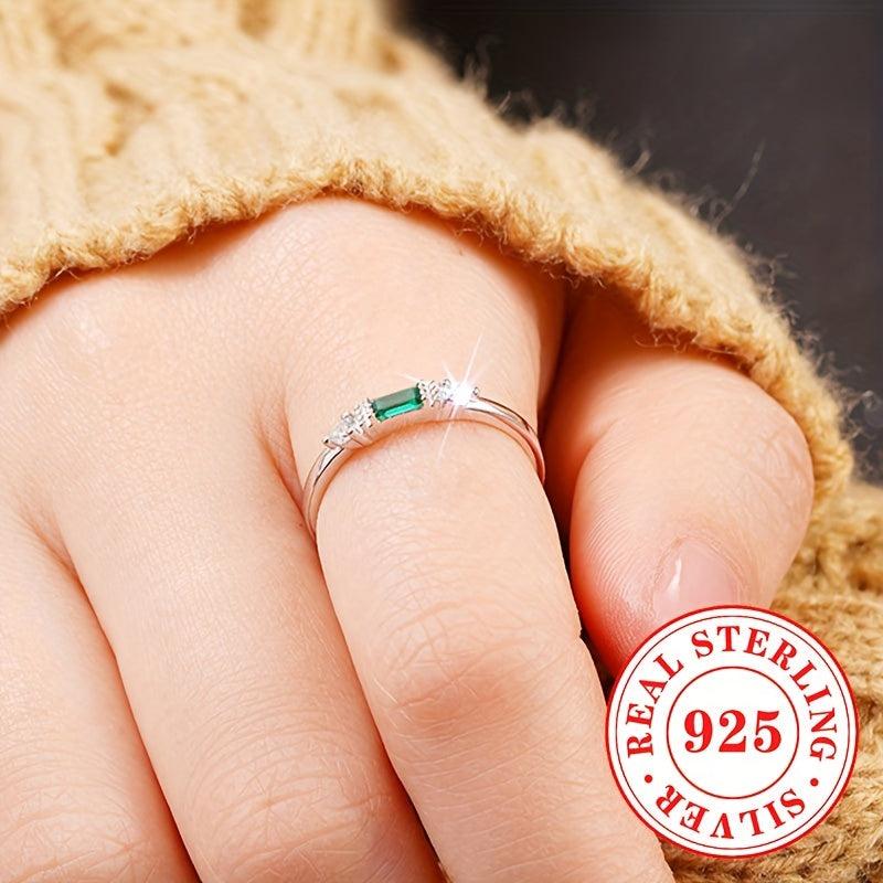 Elegant synthetic green zirconia ring made of pure silvery material. Perfect for parties and casual wear.