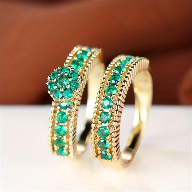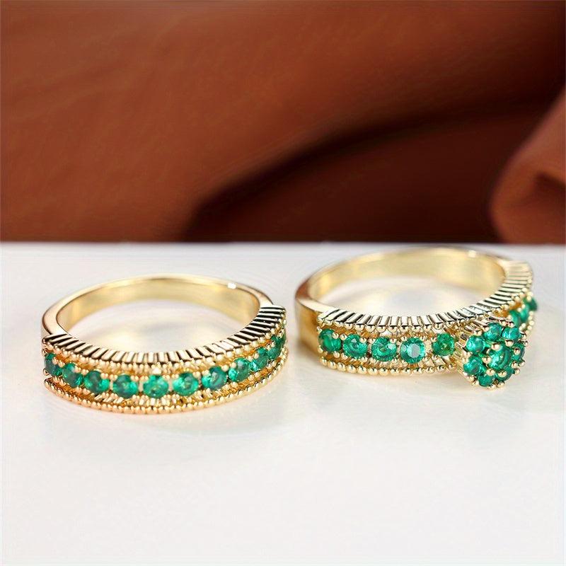Add a touch of elegance to your look with these green synthetic zirconia rings set, perfect for weddings, parties, and everyday wear.
