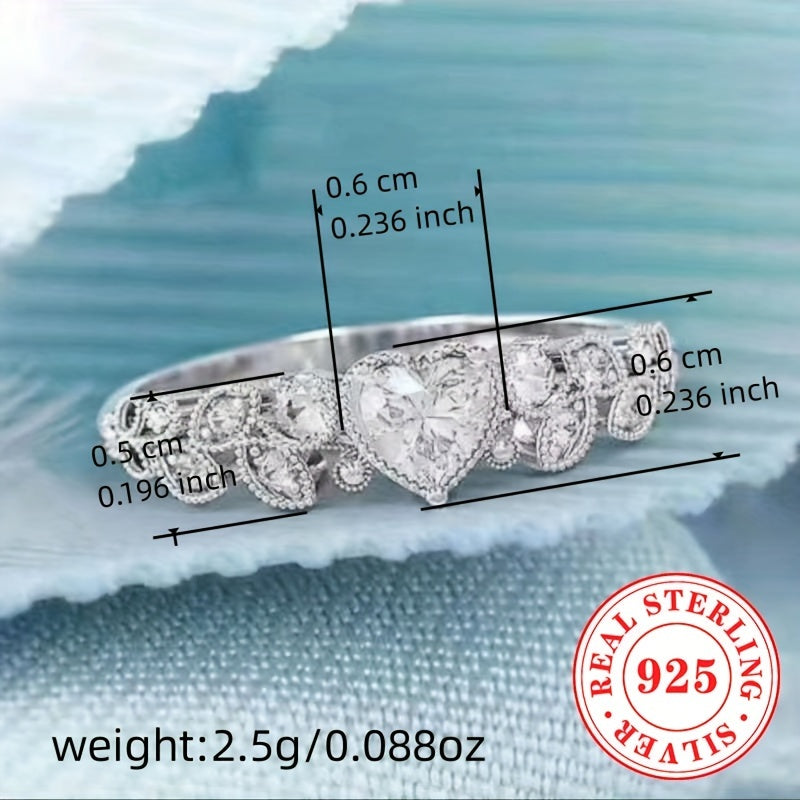 This exquisite heart-shaped ring is made of 925 sterling silver with rhodium plating, adorned with synthetic zirconia. Perfect for all seasons and as a gift for April birthdays. Lightweight at 2.5g.