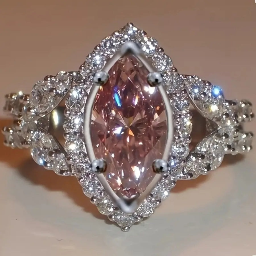 This romantic engagement ring features a marquise cut synthetic zirconia stone set in copper with a 4 prong setting. Perfect for weddings, parties, and Valentine's Day.
