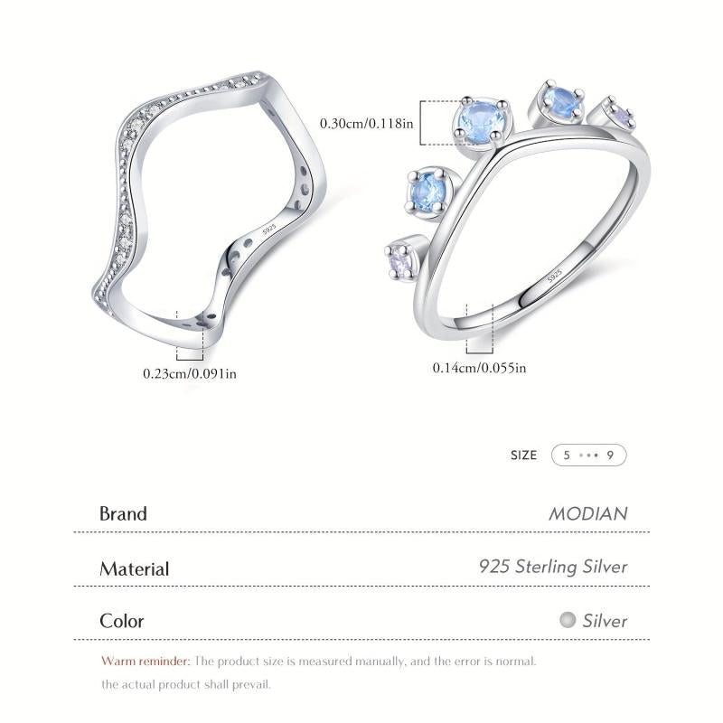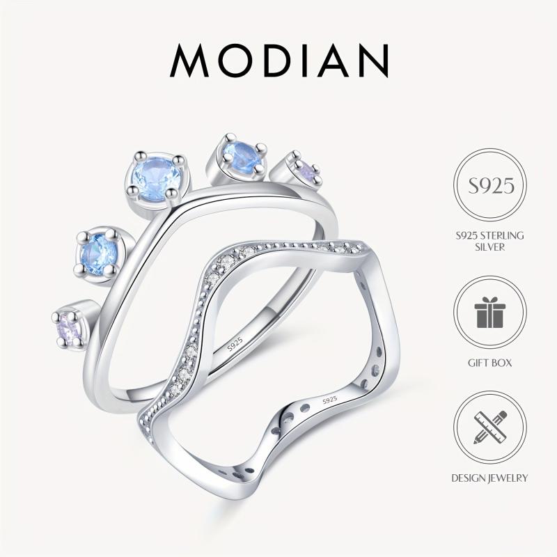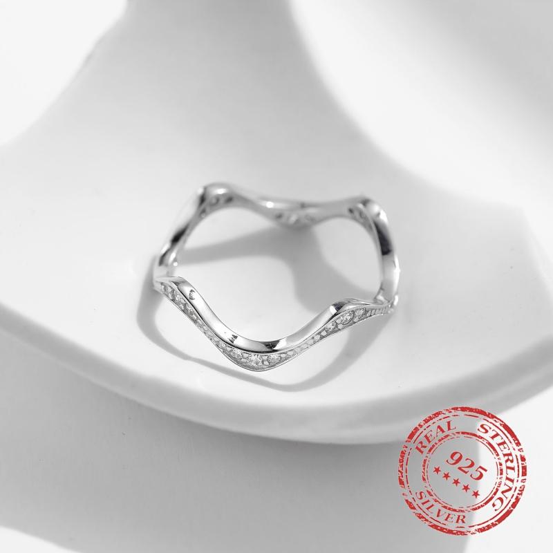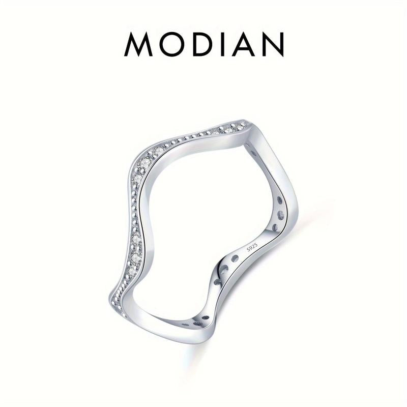 MODIAN Wave Ring 925 Sterling Silver zirconia Pave Setting