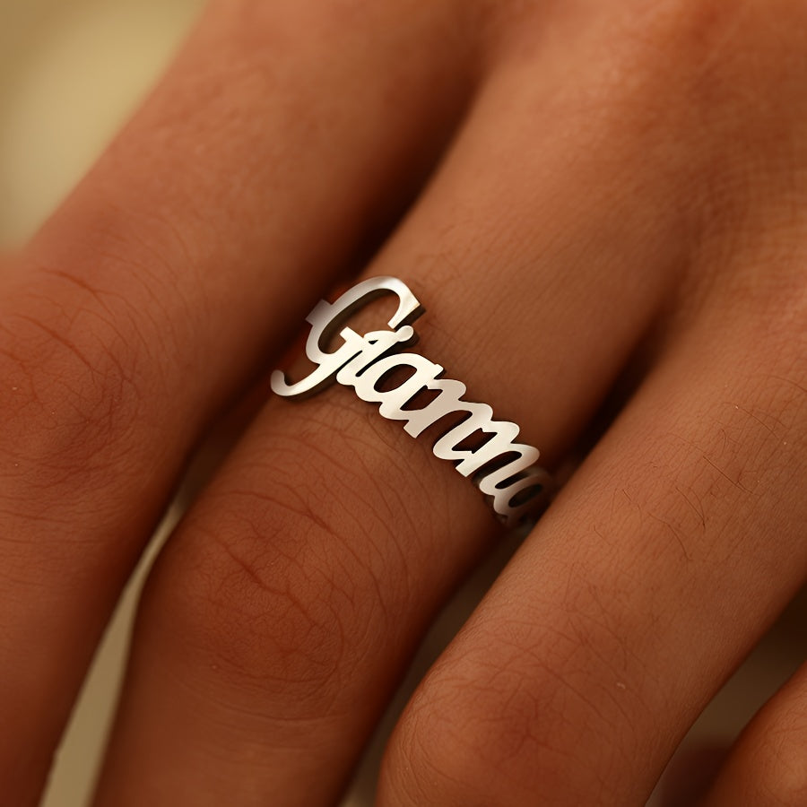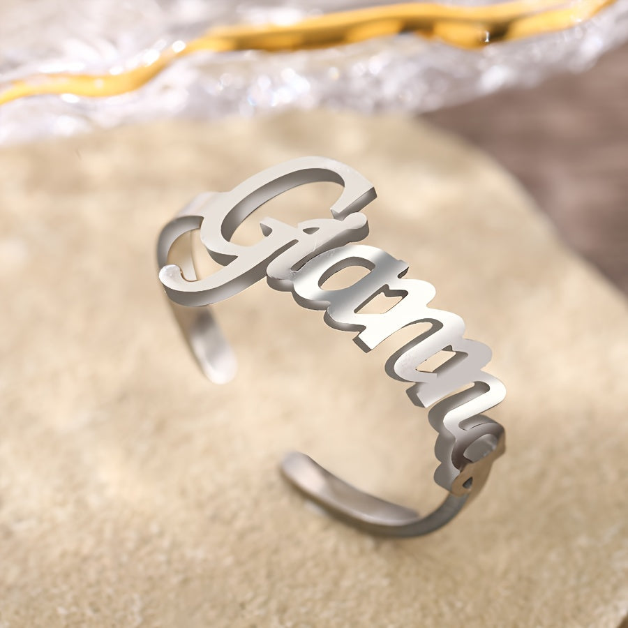 This stainless steel ring allows you to customize with your chosen letters. It's durable and open adjustable for a perfect fit.