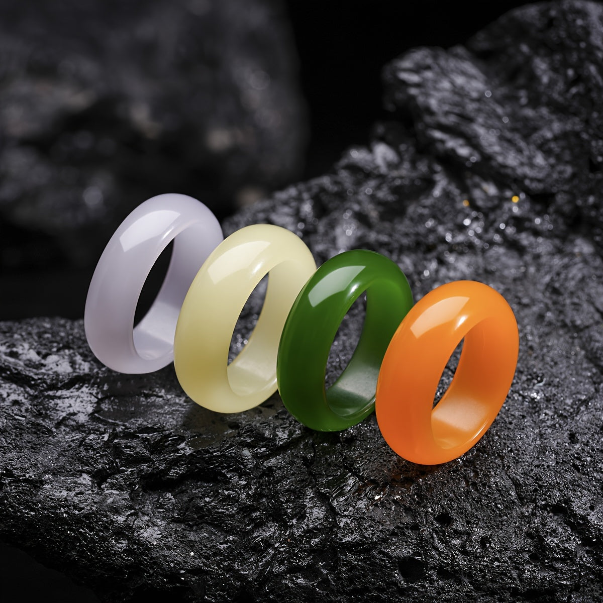 These couple rings are perfect for engagement or wedding. They have a retro style design with lavender, yellow, green, green, and orange colors. Unisex design suitable for men and women.