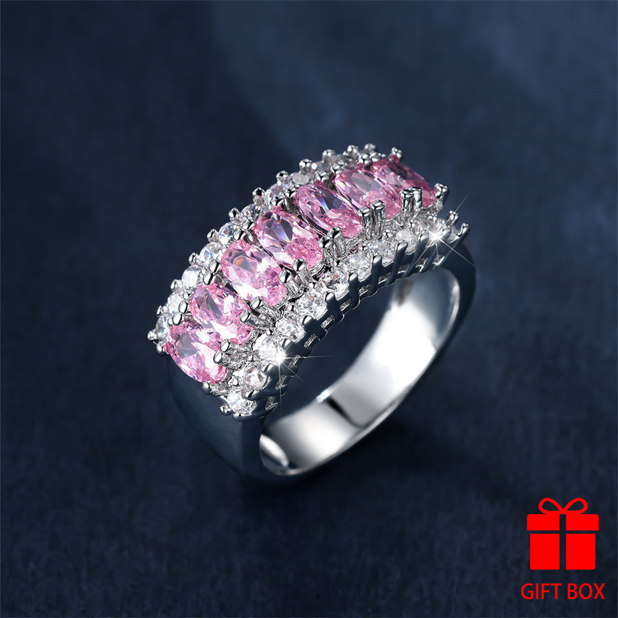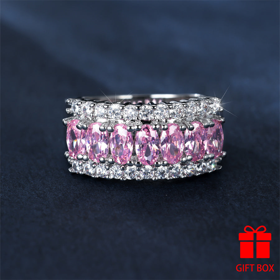 This oval pink cubic zirconia ring is a stunning piece that is perfect for daily wear or as a thoughtful gift. The durable design ensures lasting beauty and enjoyment.