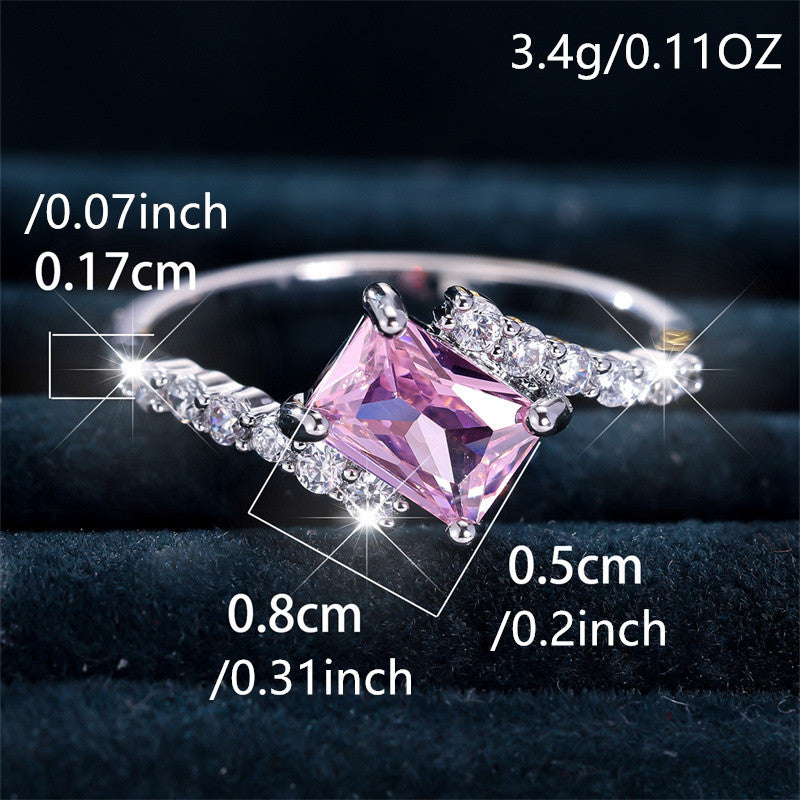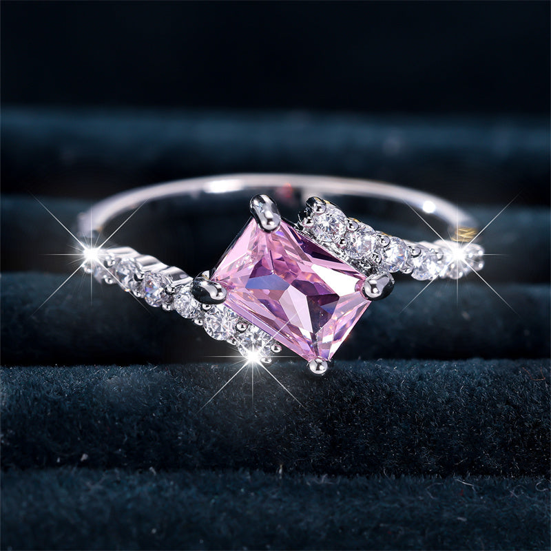Stunning pink synthetic zirconia ring with a luxurious golden tone band, perfect for weddings, Valentine's Day, and romantic occasions. Durable design ideal for vacation style.