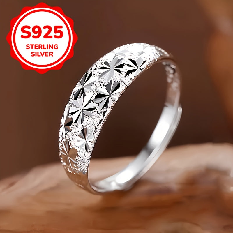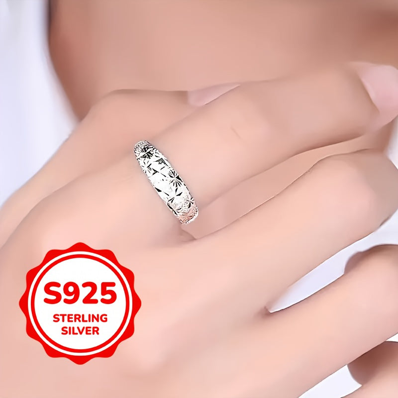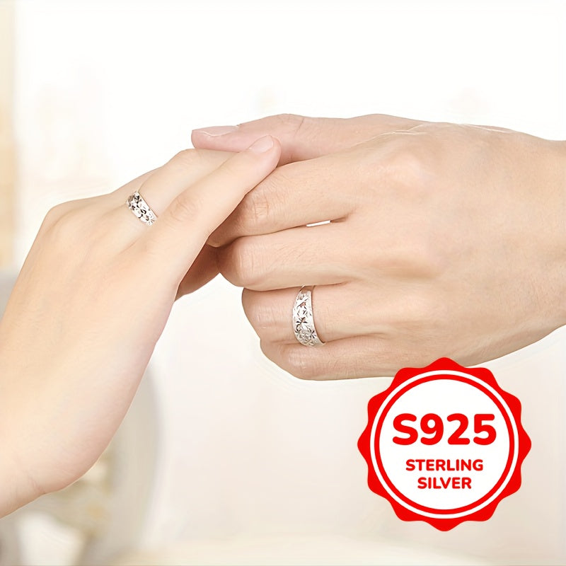Pure Silvery Astragalus Couple Ring Set - Classic Minimalist Style