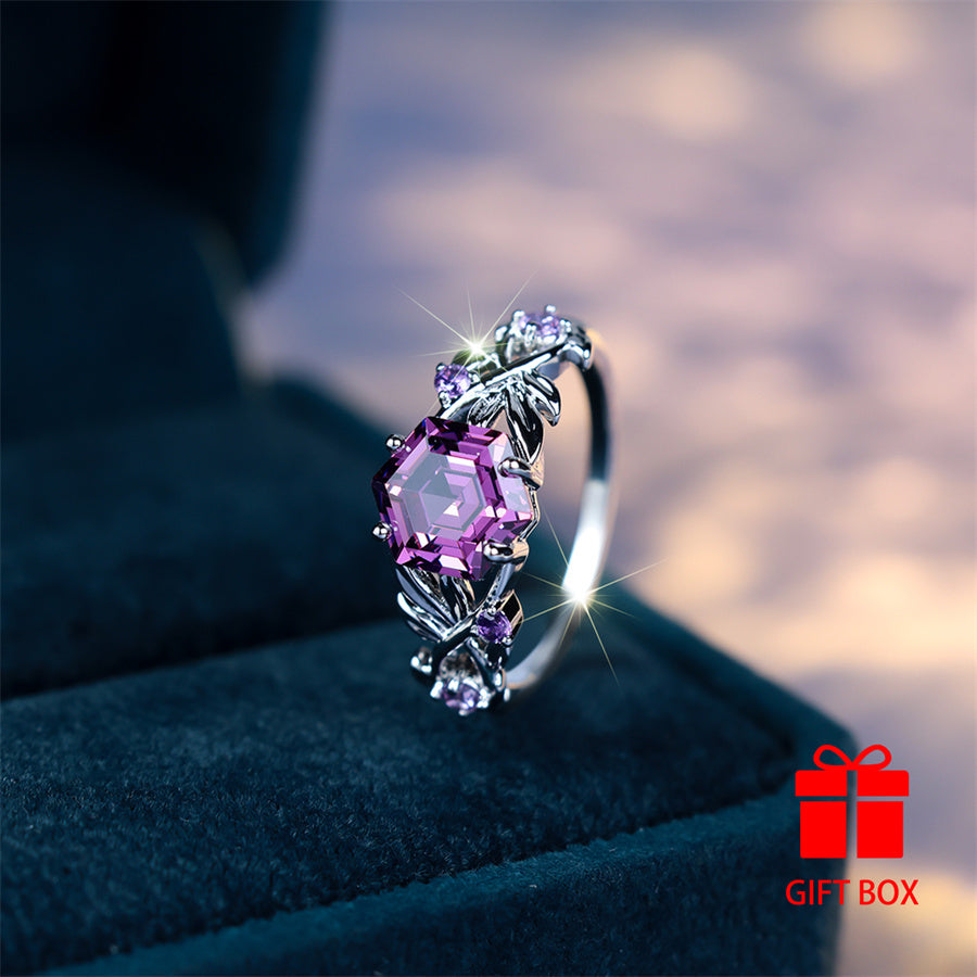 Add a touch of glamour to any outfit with this hexagonal purple cubic zirconia ring. Perfect for weddings, parties, or everyday wear.
