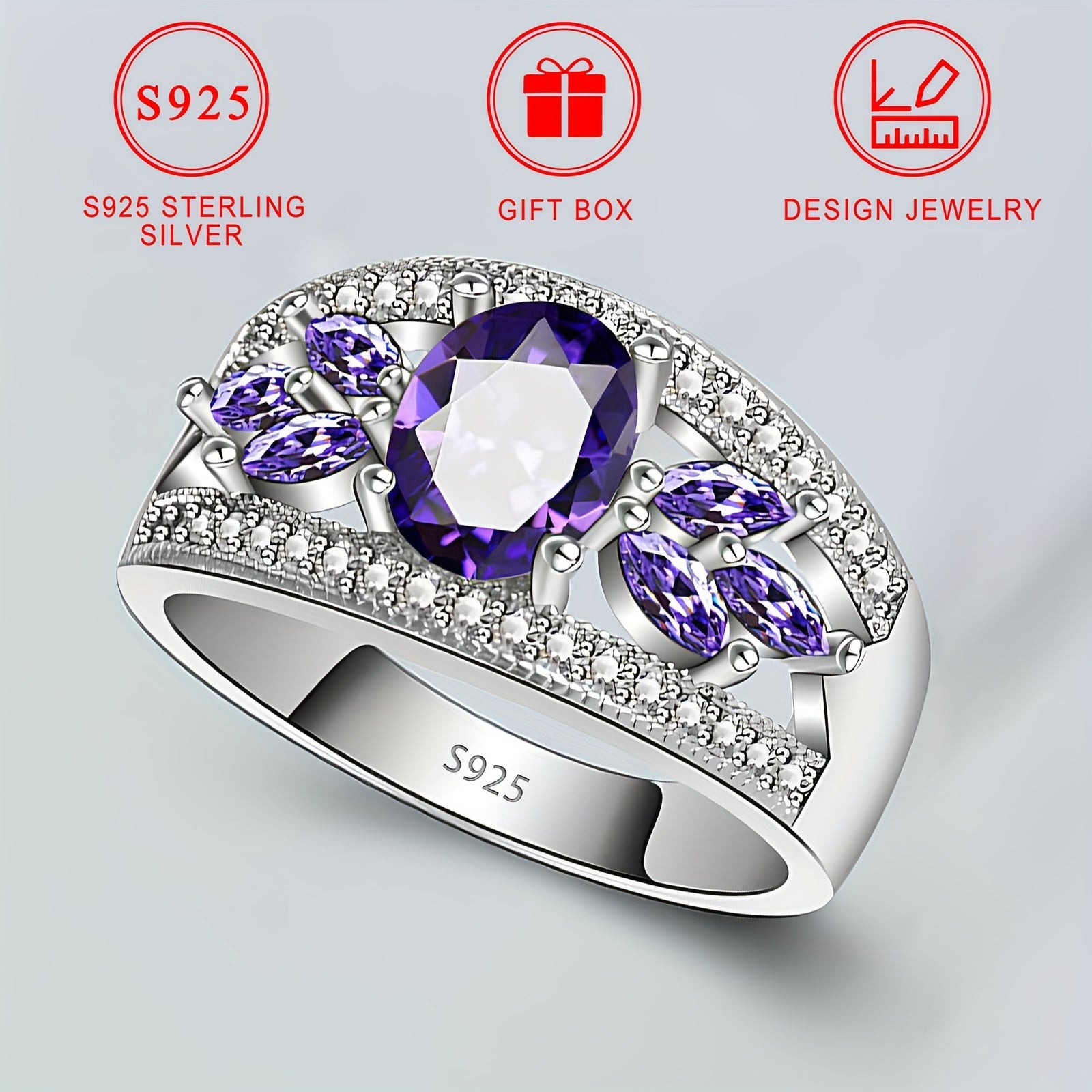 This elegant ring features a low allergy nickel purple synthetic zirconia design, perfect for daily wear, parties, and holidays. Crafted in high-quality S925 sterling silver.