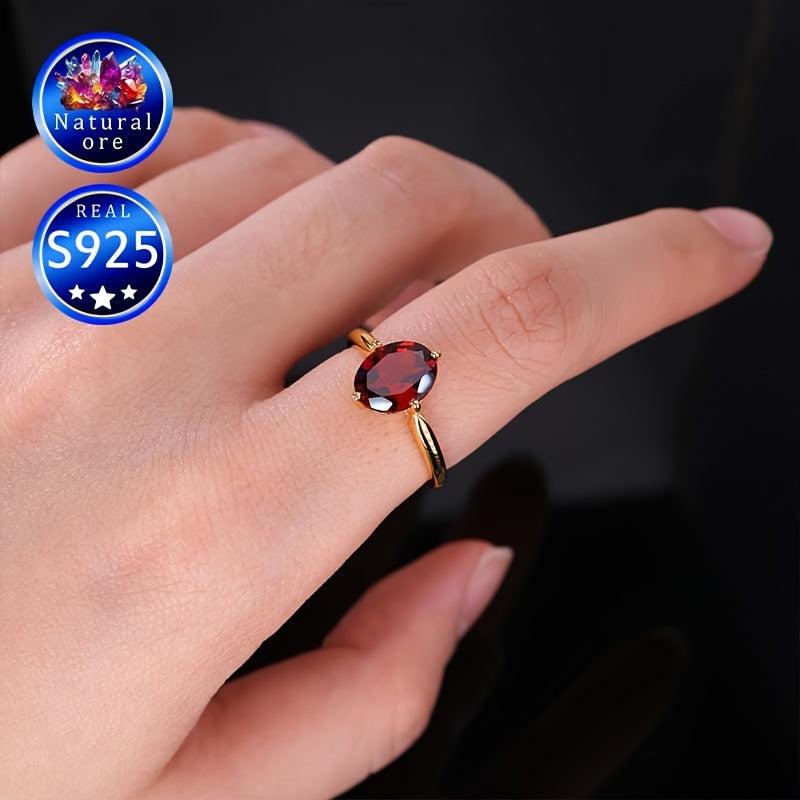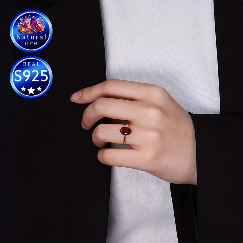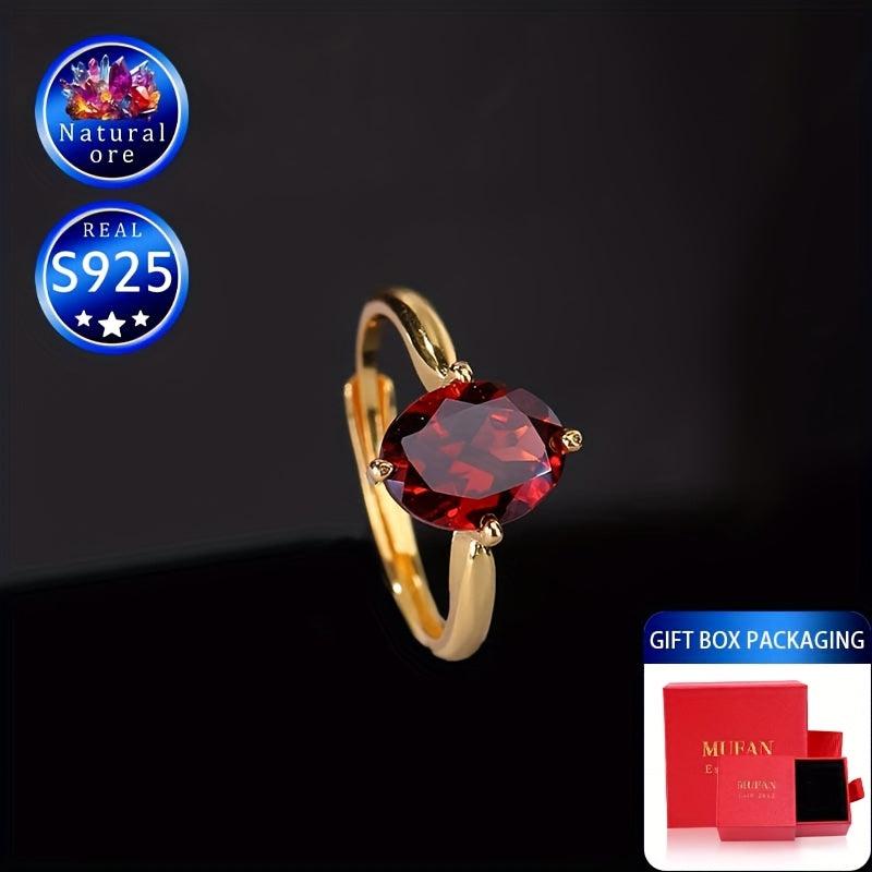 Elevate her style with this stunning Red Garnet Gemstone Ring crafted from high-quality S925 sterling silver. This adjustable ring is a perfect gift for any occasion.