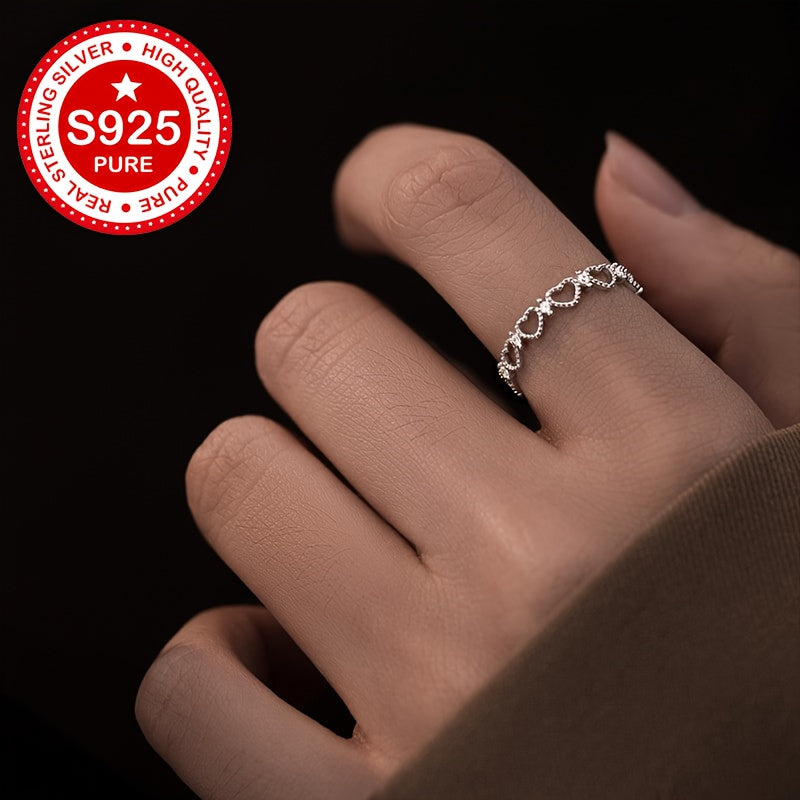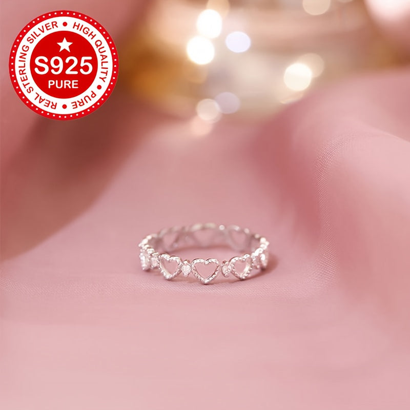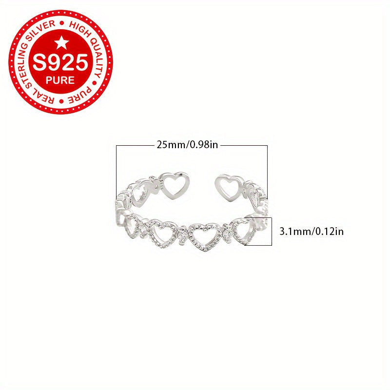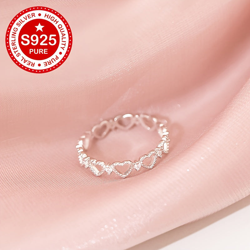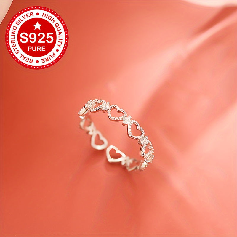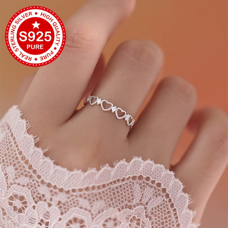 This elegant love ring features an openwork design with a heart-shaped synthetic Zirconia opening. Made of s925 silver, it exudes fashion and elegance, perfect for various occasions.