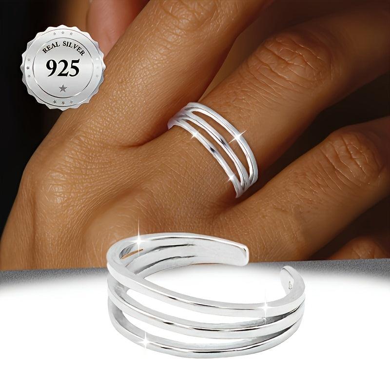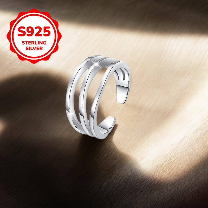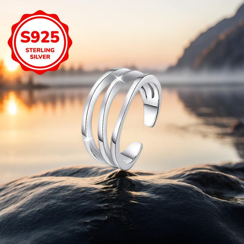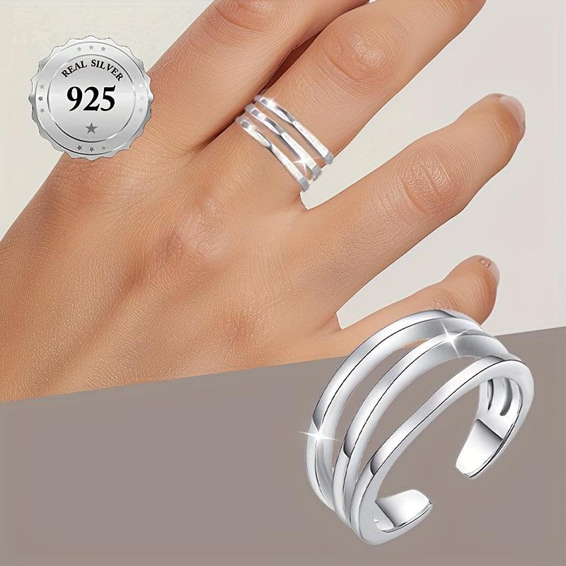 S925 Silver Open Ring - Three Layers Minimalist Stylish
