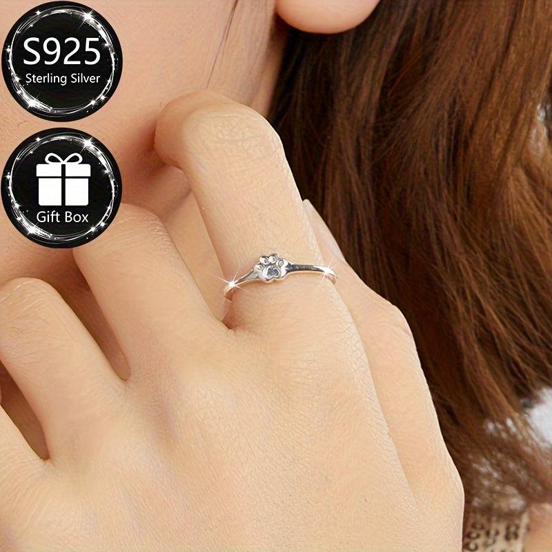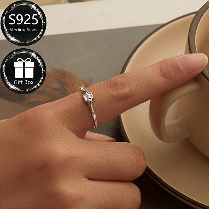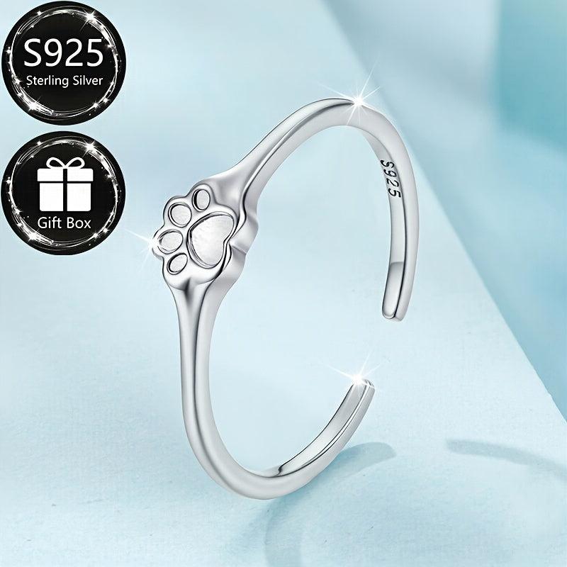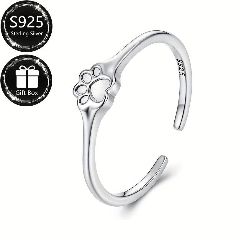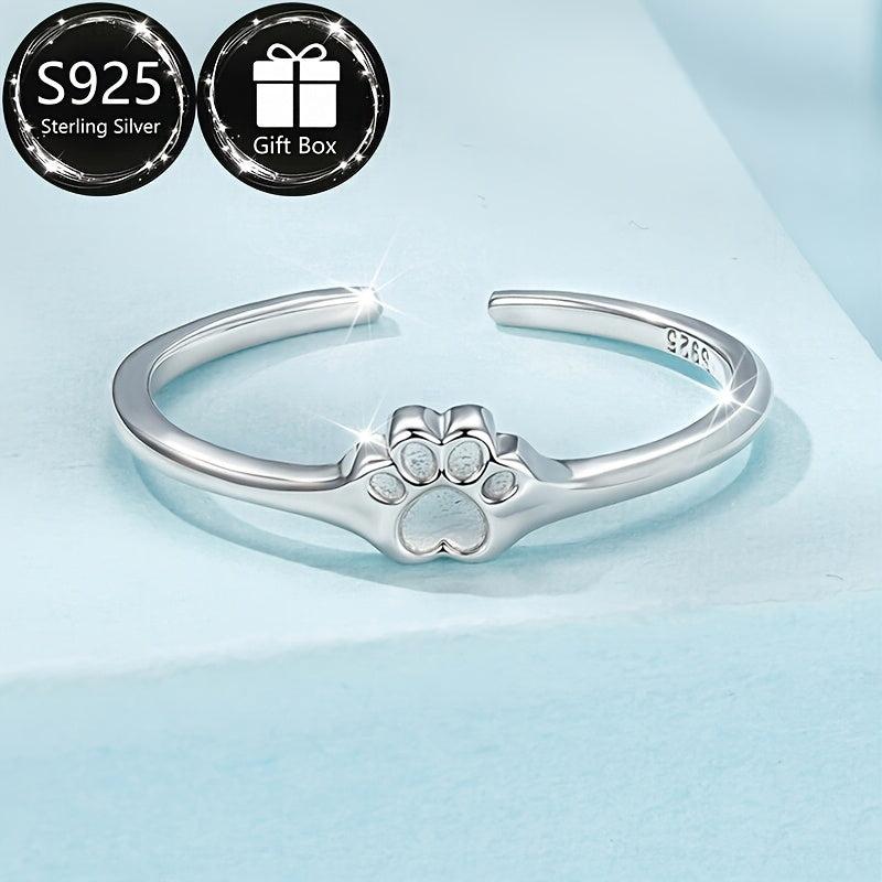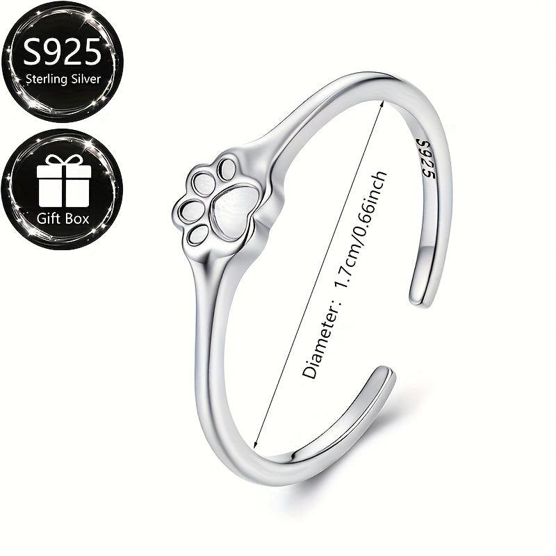 This beautiful S925 sterling silver adjustable ring features a pet paw print design, making it perfect for daily wear and parties. It is an ideal gift for any animal lover.