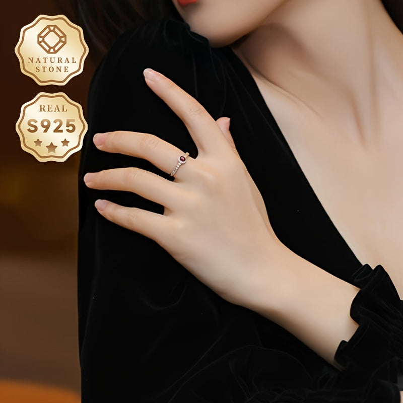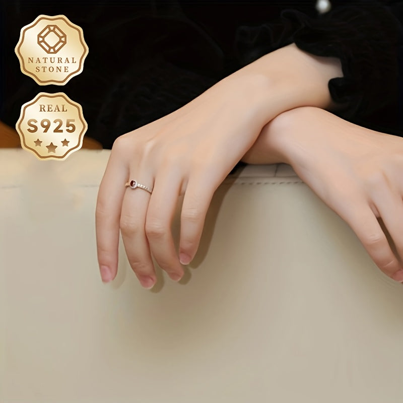 This stunning S925 silver ring features a beautiful red natural stone with a love crown design. The ring is adjustable to fit any finger size and showcases unique natural stone patterns.