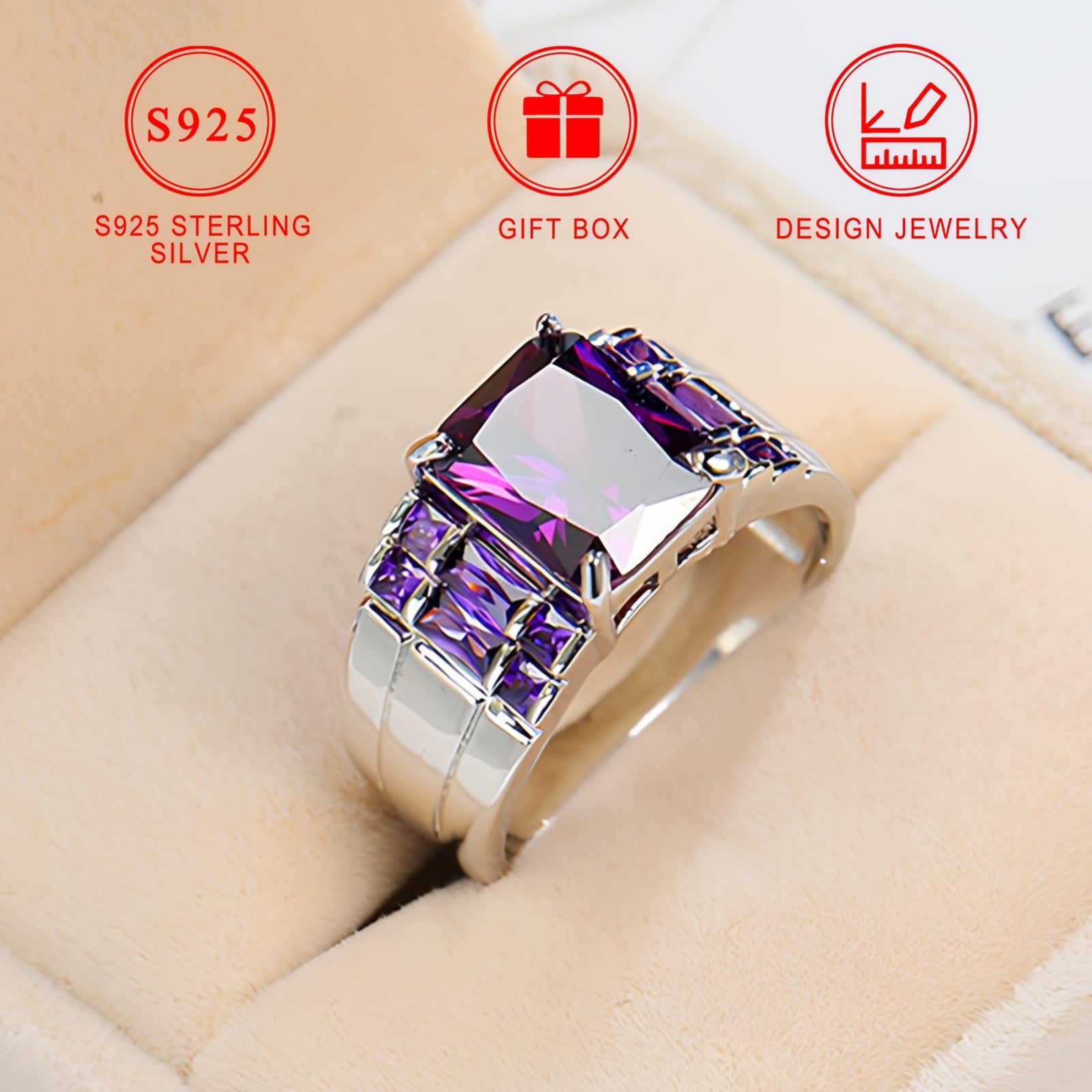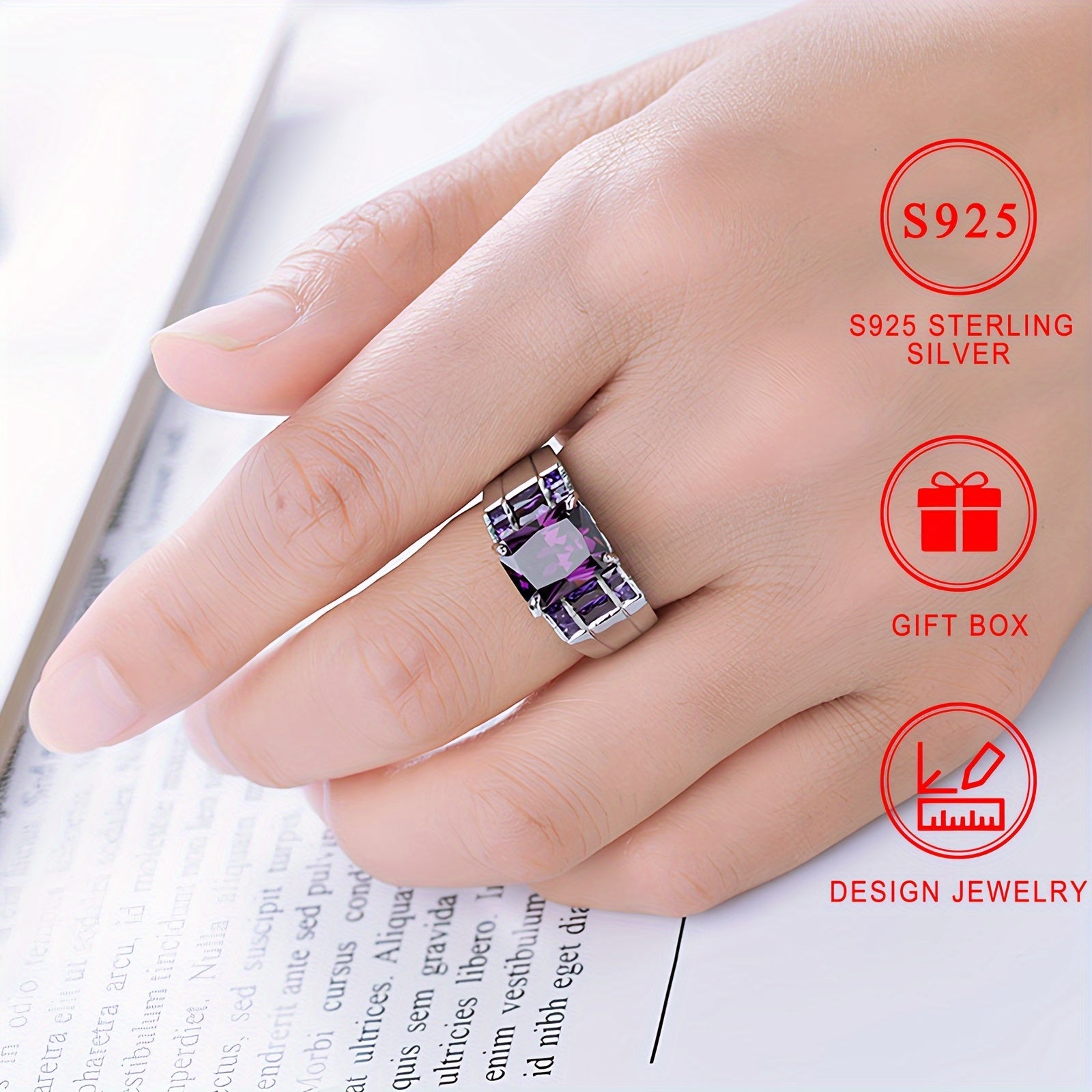 This stunning S925 silver ring features a square cut purple synthetic zirconia, perfect for engagements, weddings, and anniversaries. The holiday theme design makes it ideal for Thanksgiving gifts.