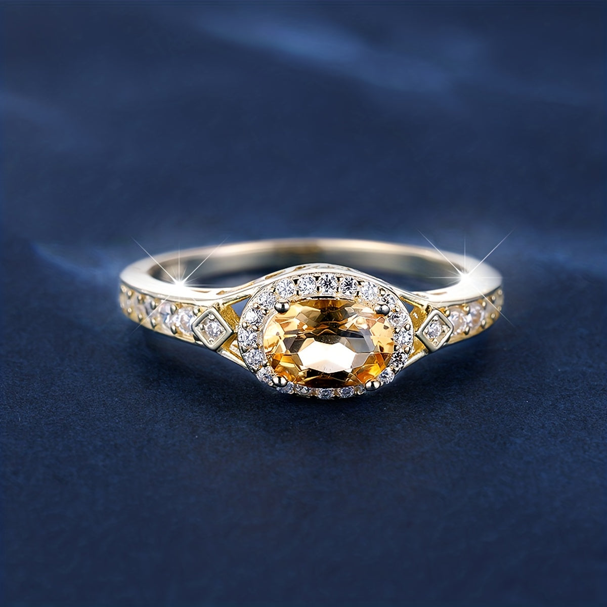 This stunning S925 sterling silver ring features 3g yellow cubic zirconia sparkling accents, making it perfect for weddings and engagements. The high-quality synthetic gemstone adds a touch of elegance to any occasion.