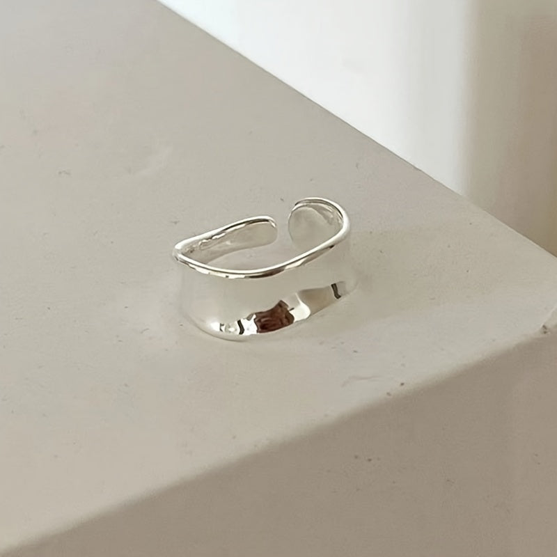 This elegant S925 sterling silver ring features an adjustable size with an irregular curve design, making it a fashionable choice for women. Perfect for engagements, proposals, or as a gift from men to their girlfriends.