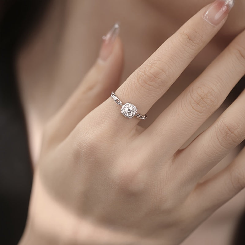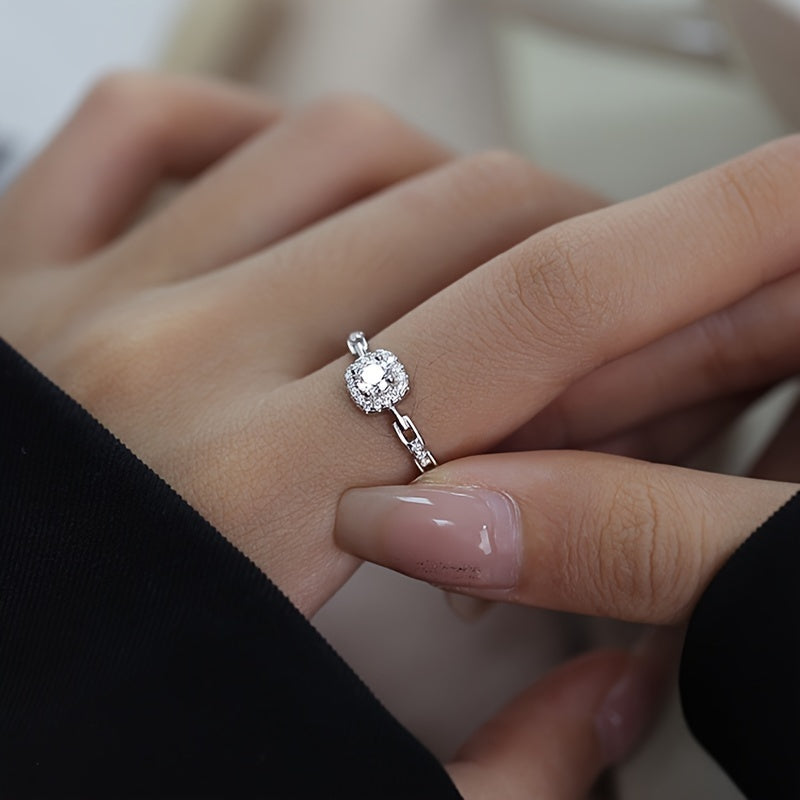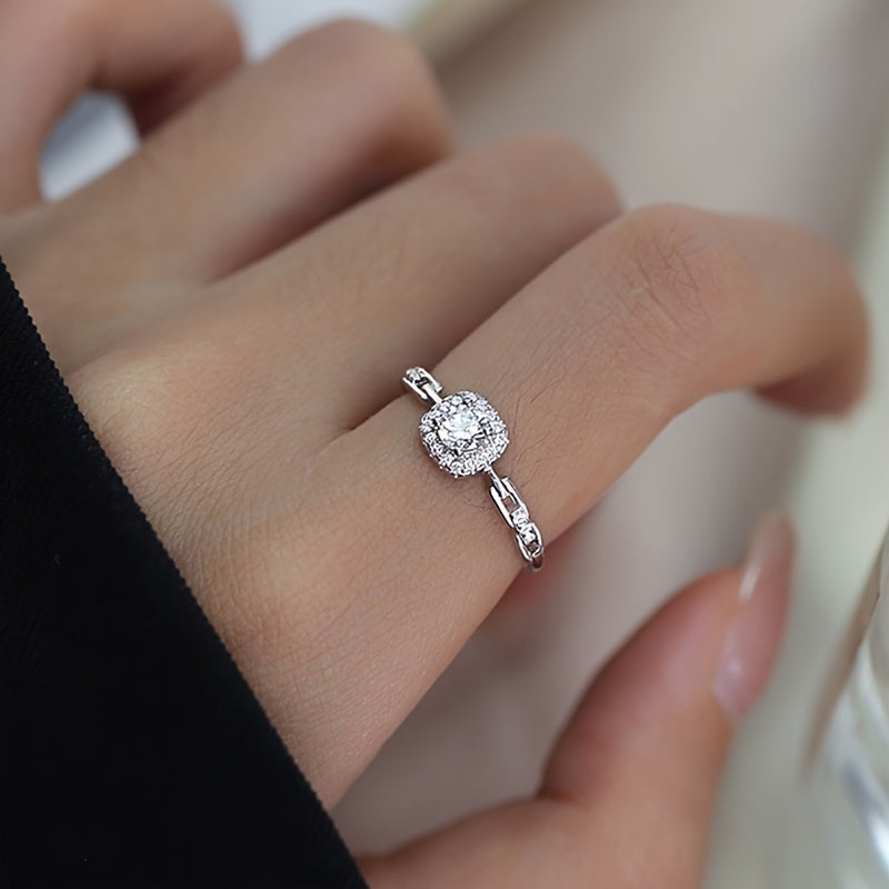 S925 Sterling Silver Hollow Square Sugar Chain Small Niche Gift Jewelry Ring