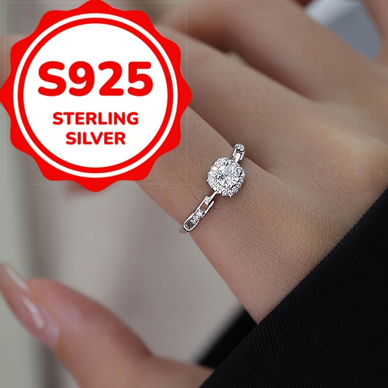 Add a touch of elegance to your look with this trendy S925 sterling silver ring featuring a hollow square design. This ring is a perfect gift option for ladies who appreciate fine jewelry.