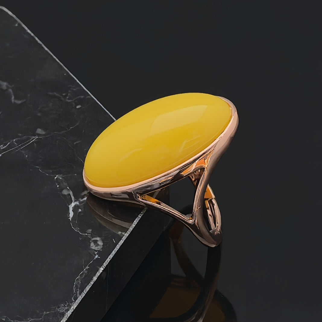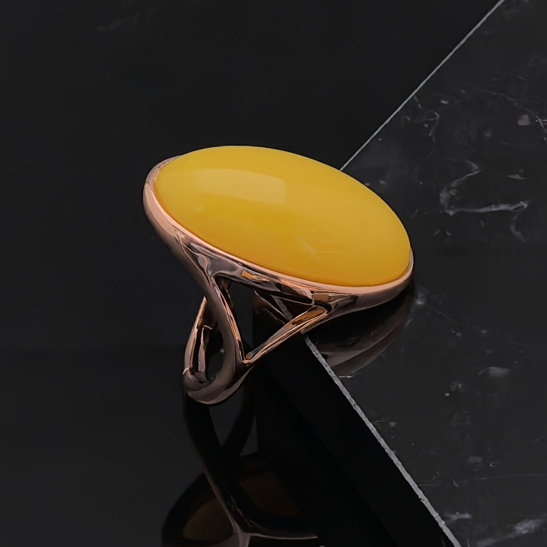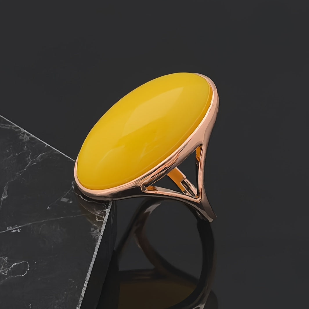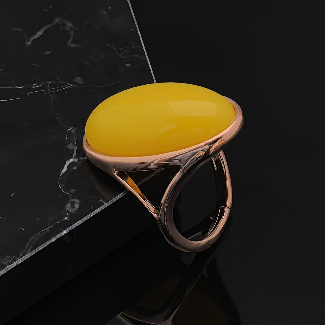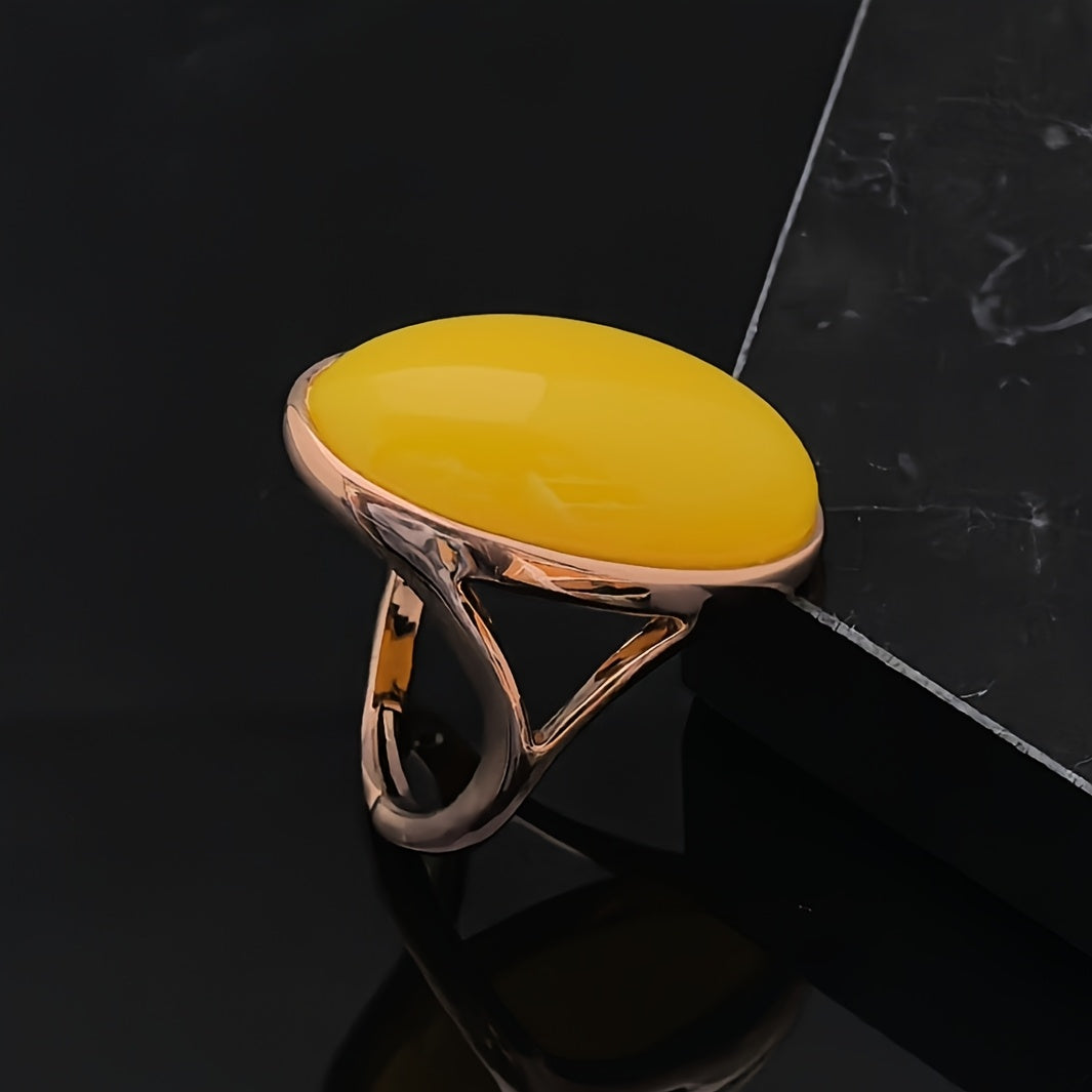 This stainless steel open ring features a synthetic amber yellow stone, perfect for those born in August. Add a pop of color to your outfit with this stylish piece of jewelry.