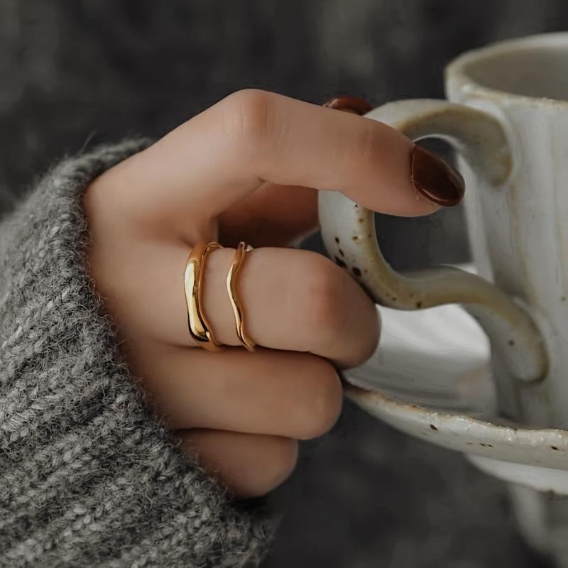 Elevate your casual attire with this double layer wave ring made of stainless steel. It's a versatile accessory perfect for everyday wear or as a gift during special occasions.