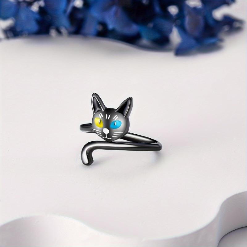 This elegant cat ring is made of sterling silver, perfect for cat lovers. It's a stylish and cute accessory for women.