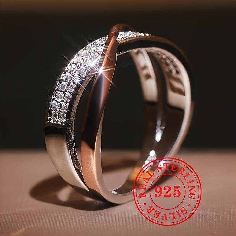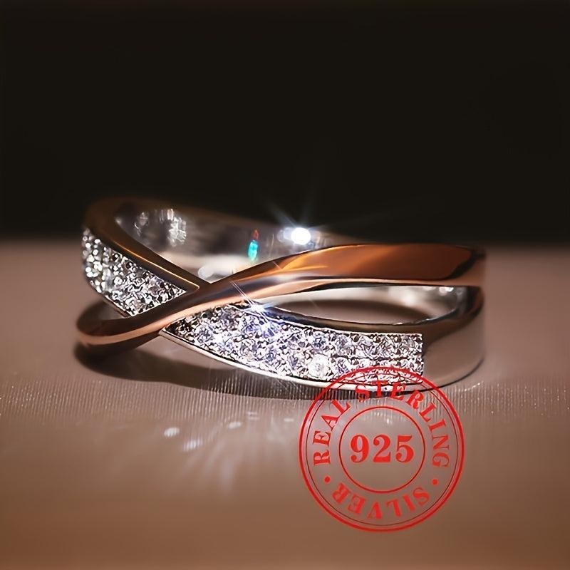 This exquisite 925 sterling silver ring features a unique twisted design with synthetic zirconia stones that represent the April birthstone. Perfect for engagements, weddings, or as a Valentine's gift for her.