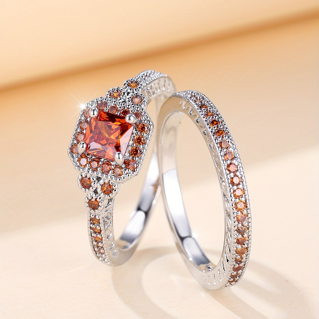 Celebrate your special day with this 2 piece wedding ring set. The bride's ring features zirconia sparkles, and the bridesmaid ring is a beautiful complement. A perfect gift for the couple!