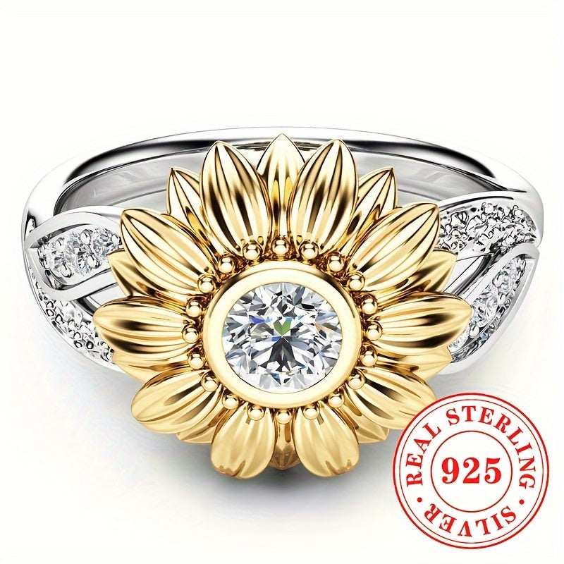 Women's Anniversary Ring S925 Silvery Two tone Flower Ring