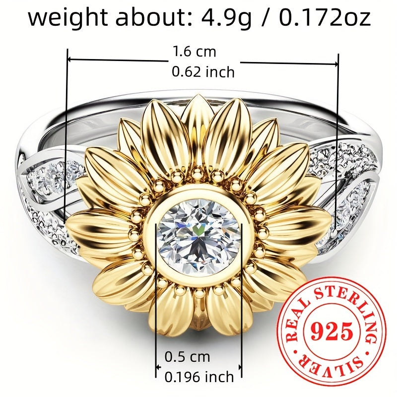 This stunning anniversary ring features synthetic zirconia set in a two-tone flower design. Perfect for wedding, party, or banquet.