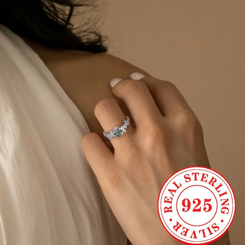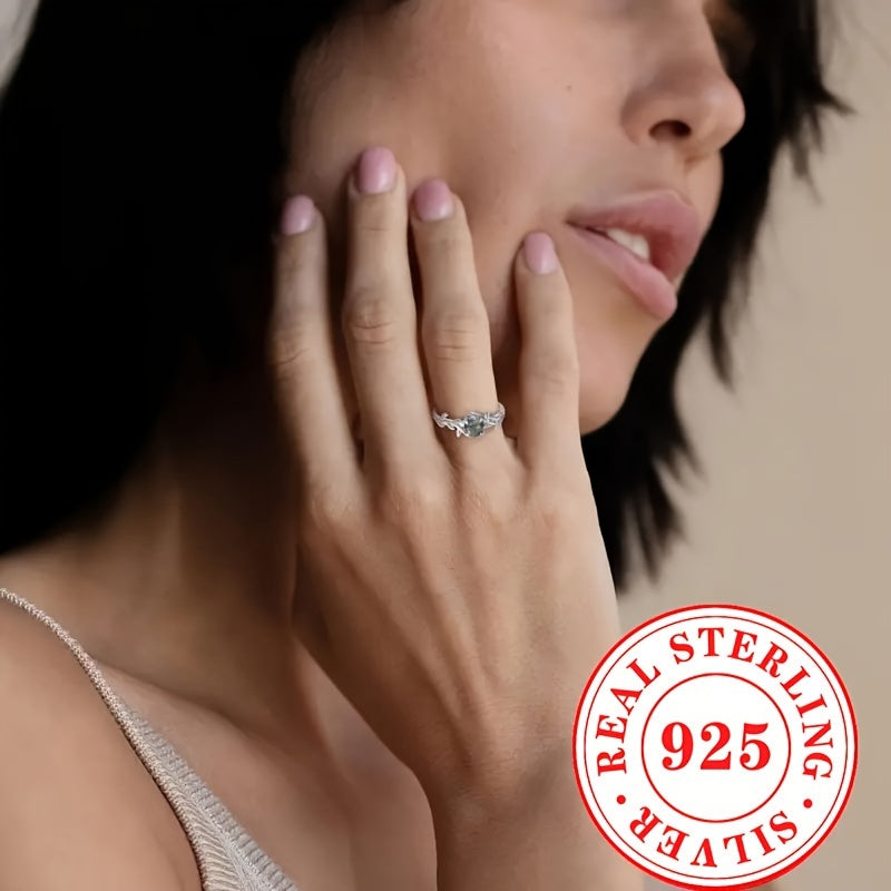 Women's Leaf Design Zirconia Ring S925 Pure Silvery with Unique Style