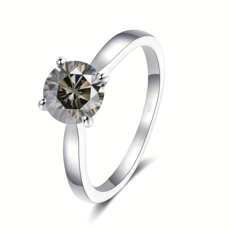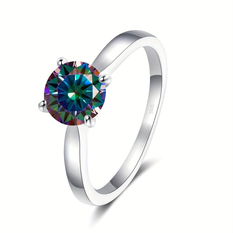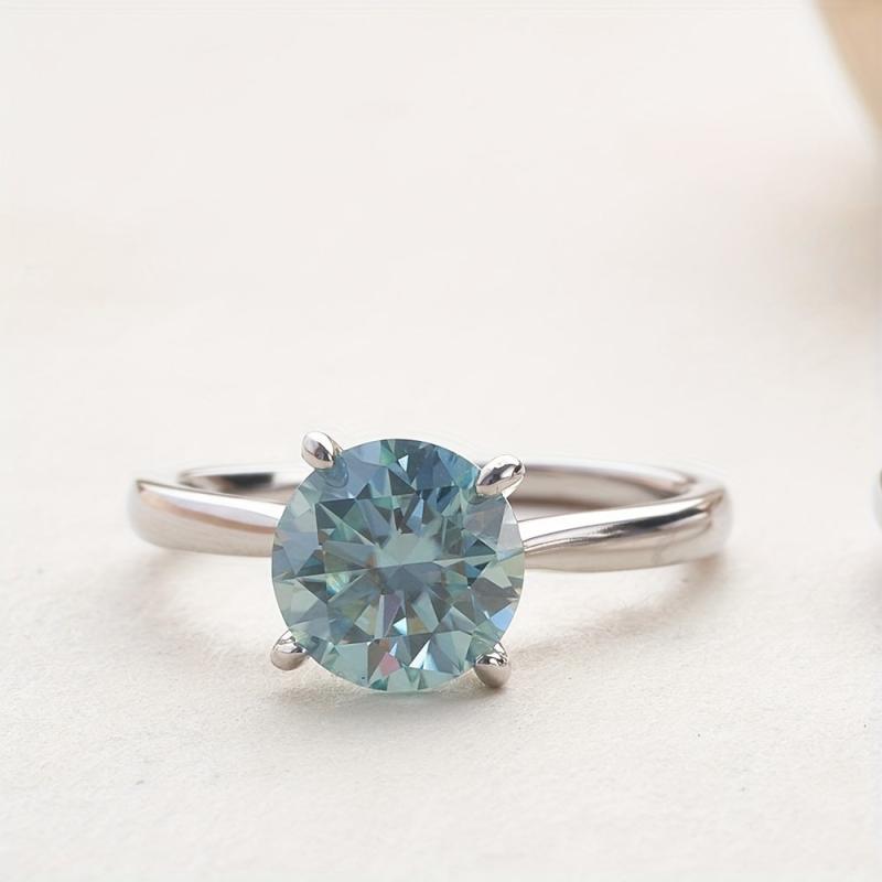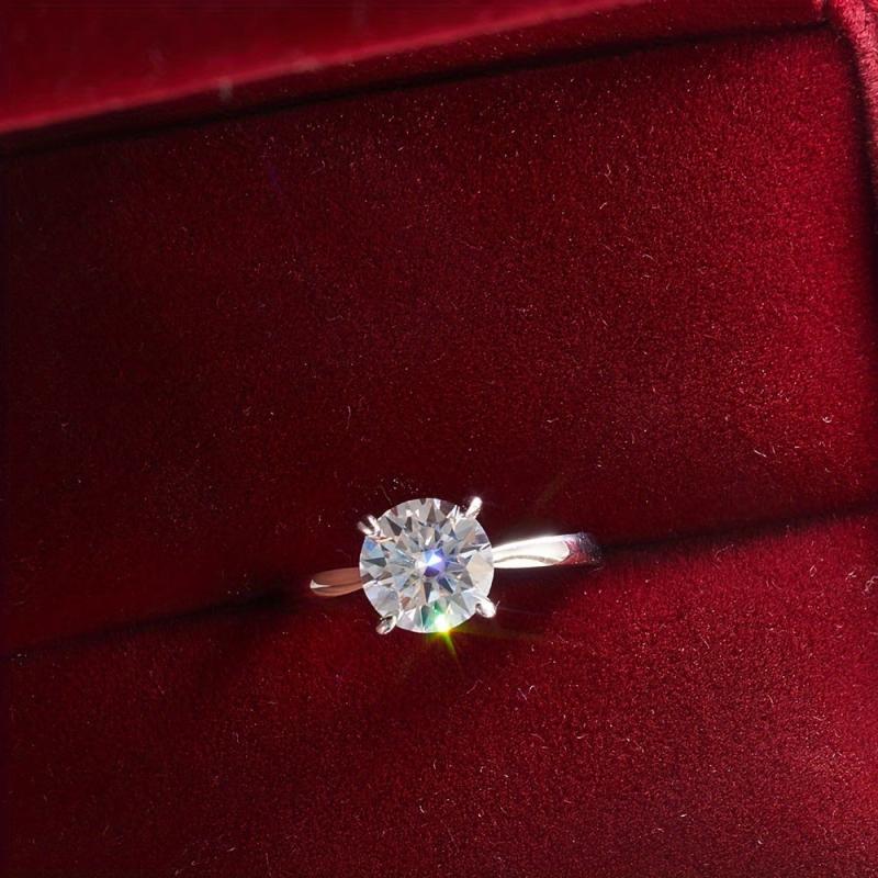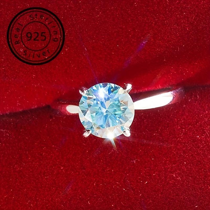 This stunning women's engagement ring features a single round Moissanite stone set in a classic 4-prong setting. Made of 925 silver, this ring is perfect for all seasons and occasions, making it an ideal gift for Christmas or birthdays.